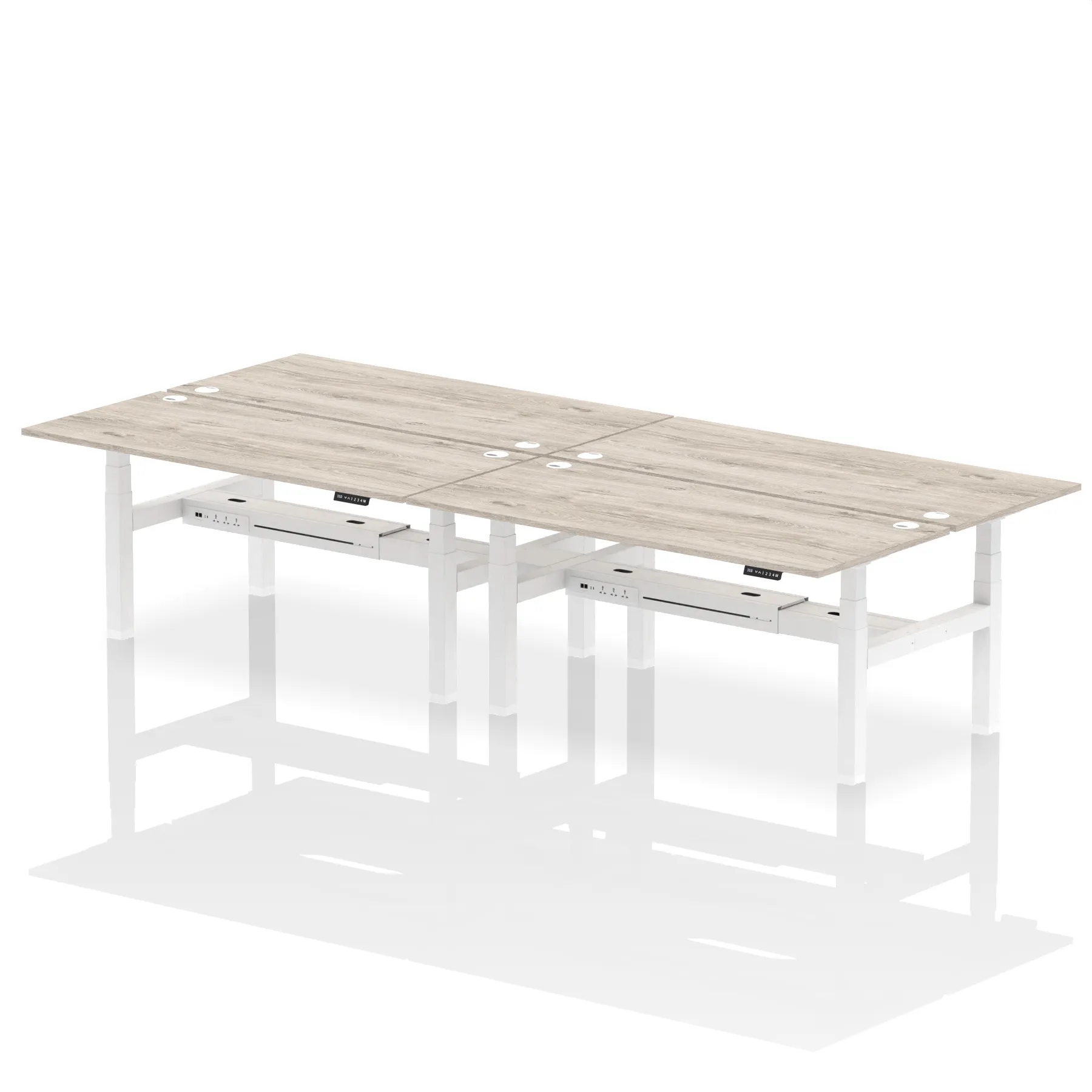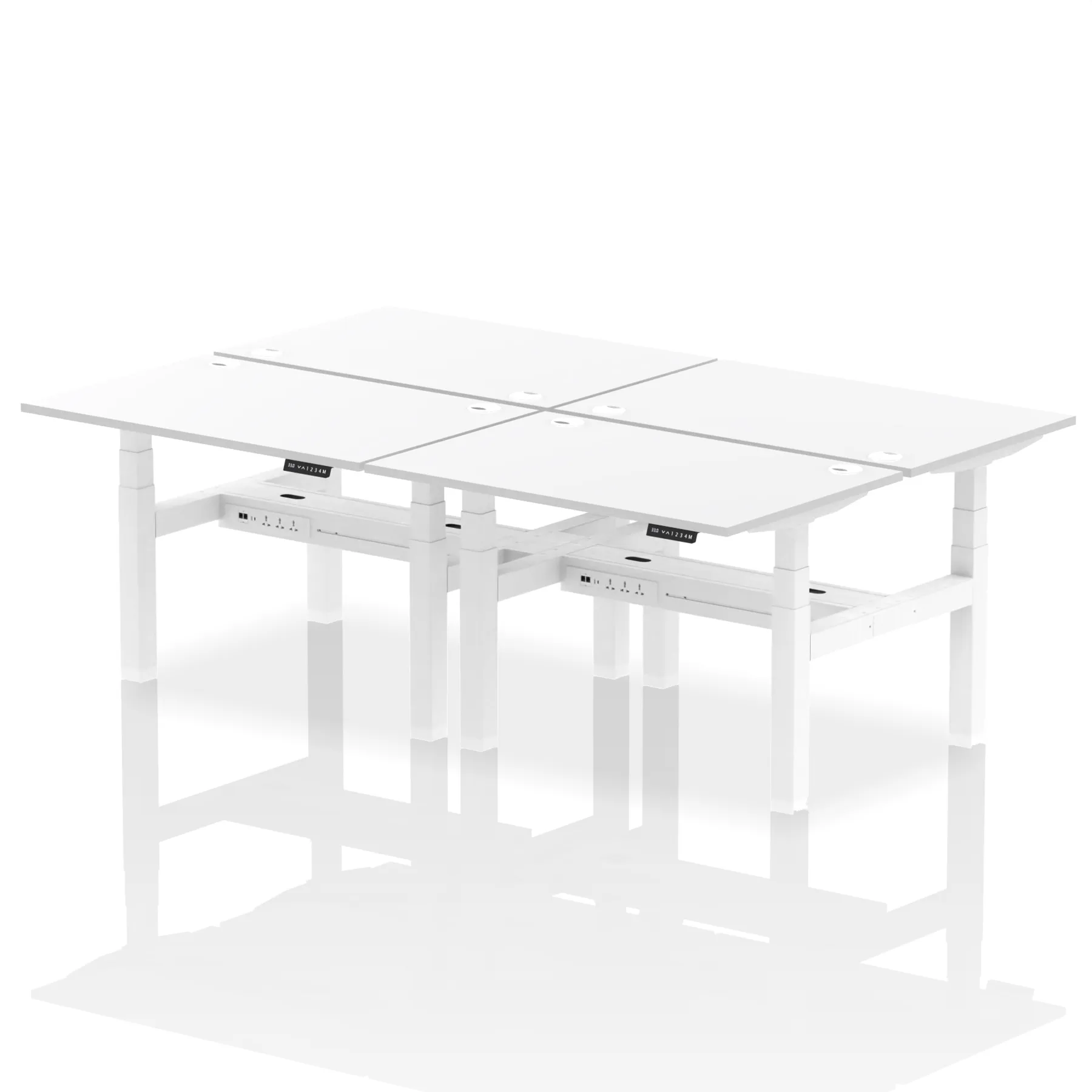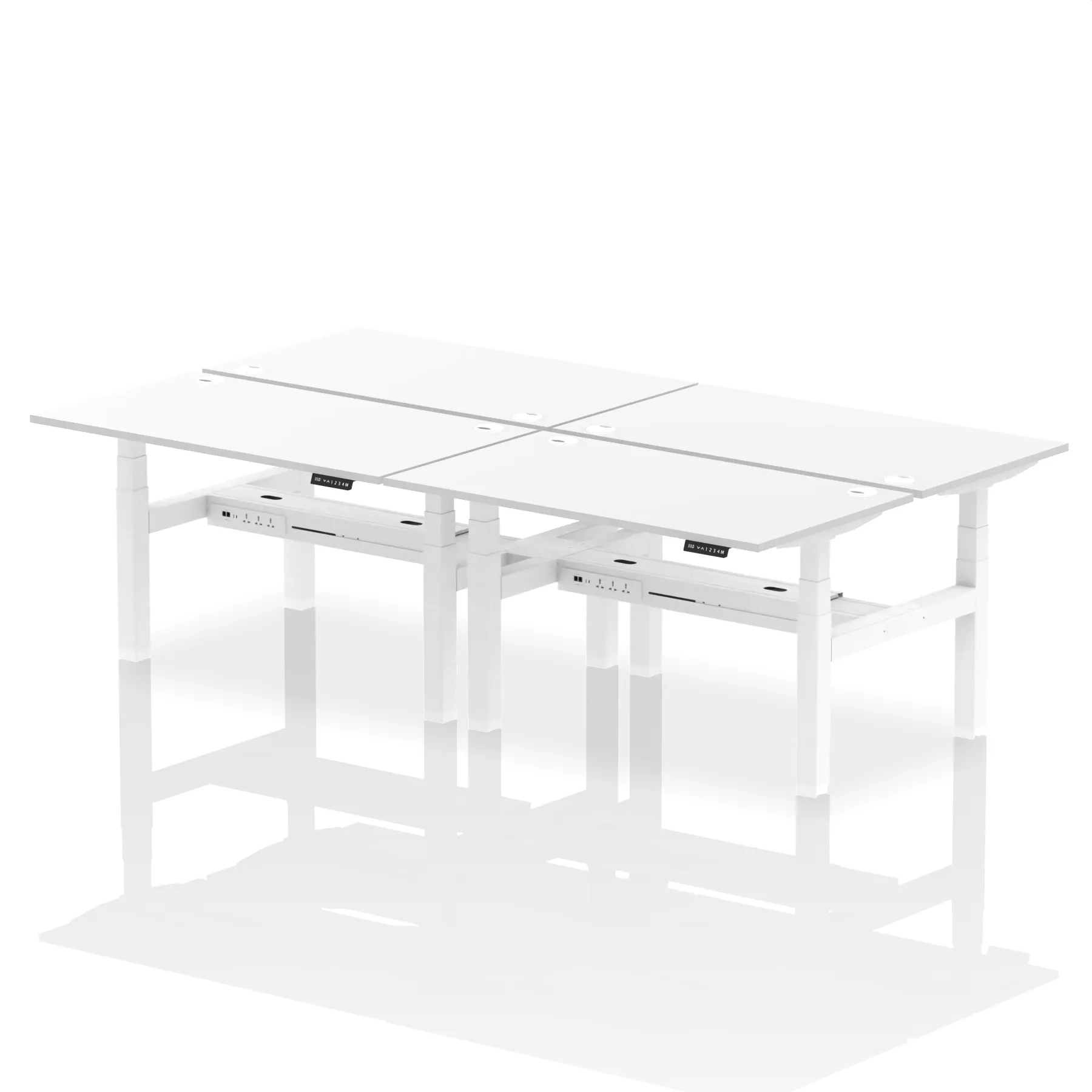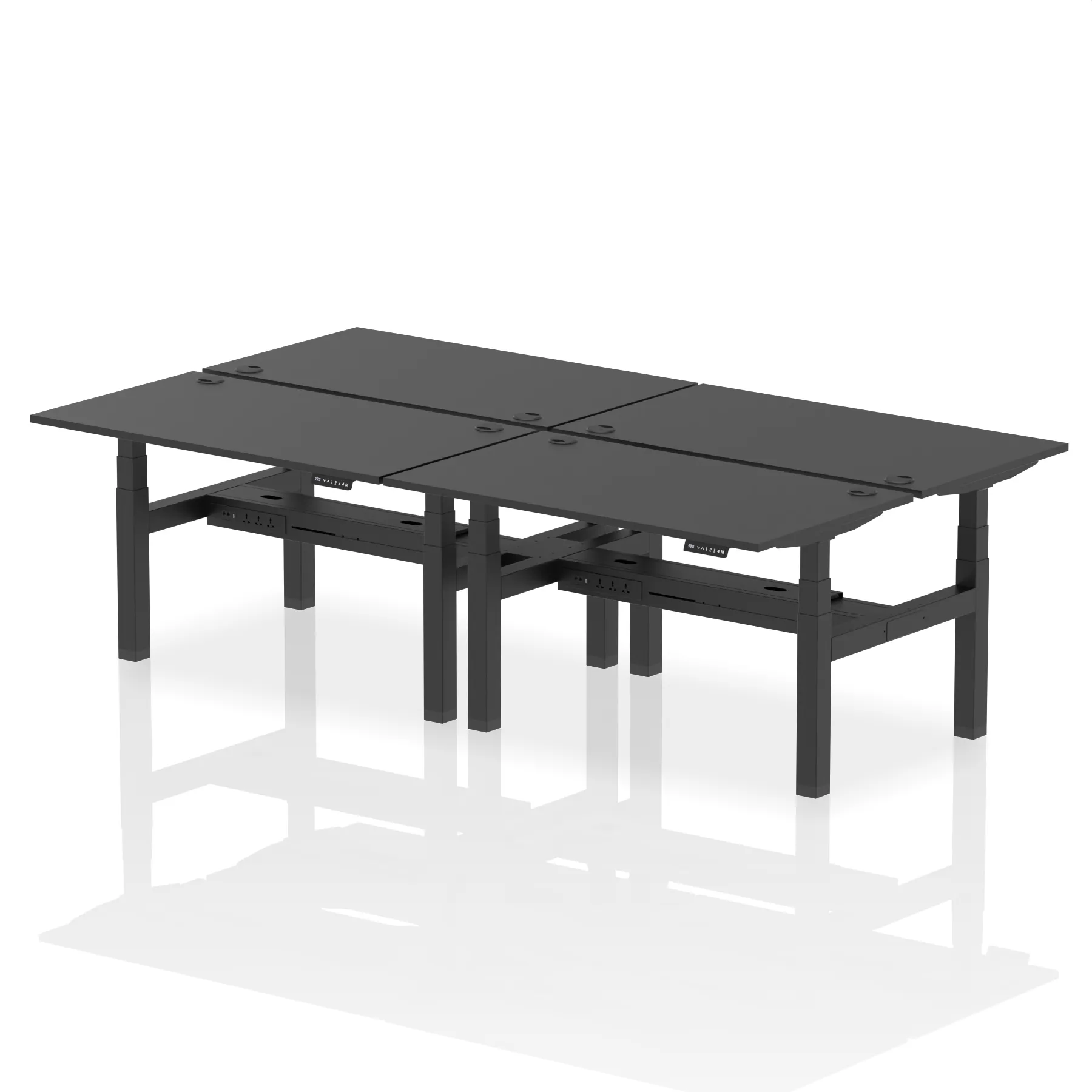 The Air Back-to-Back Height Adjustable Desk, designed for four, is the epitome of efficiency and connectivity. Each desk comes equipped with two Ethernet ports, a USB port, a USB-C port, and three UK plugs, catering to all digital needs. Integrated cable ports ensure a tidy workspace. Adjustable height options offer ergonomic comfort. This desk is the ultimate solution for teams seeking a connected, efficient, and adaptable workspace.