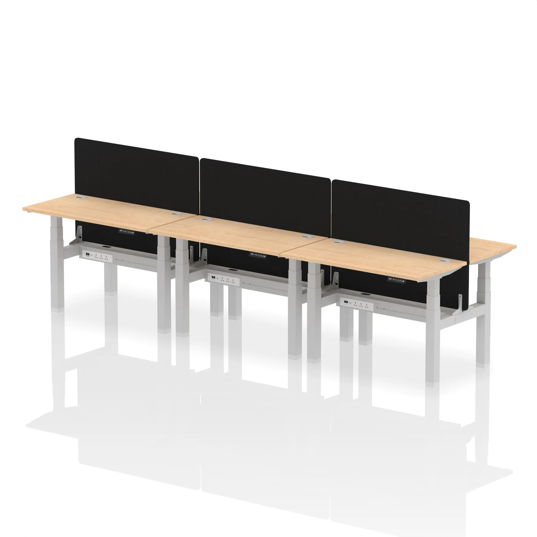 Air Back-to-Back Slimline Height Adjustable Bench Desk – 6 Person with Black Straight Screen