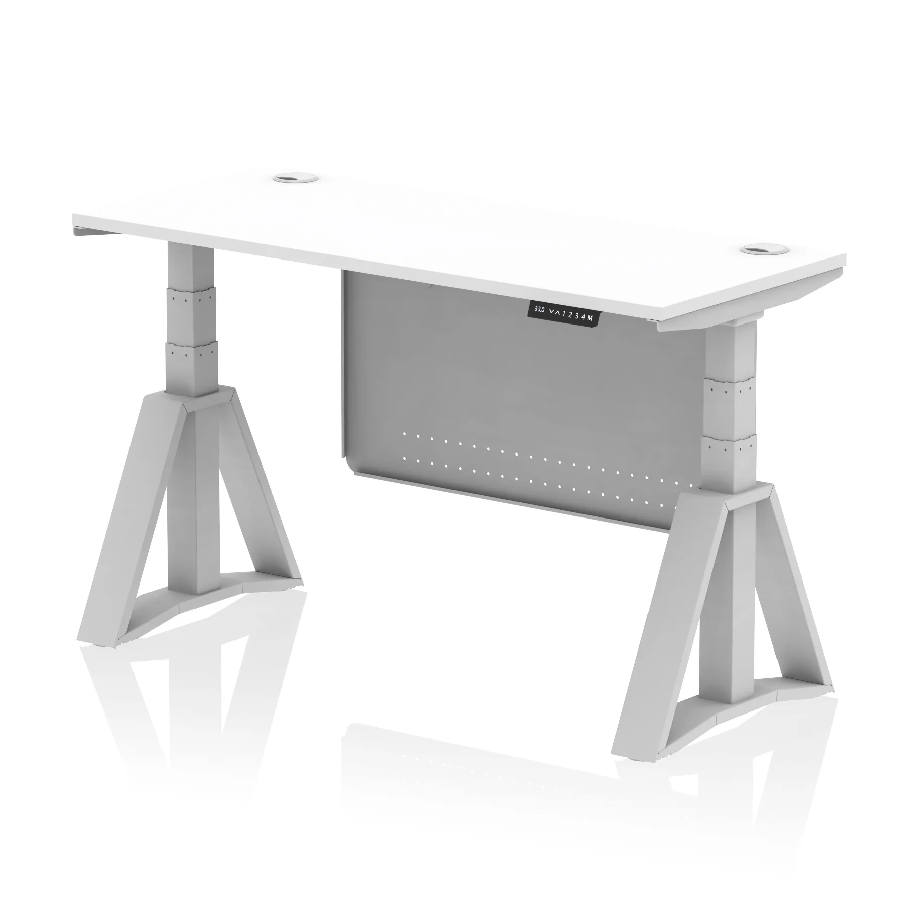 Be the first to review “Air Height Adjustable Slimline Desk With Cable Ports With Steel Modesty Panel With Piste Foot”