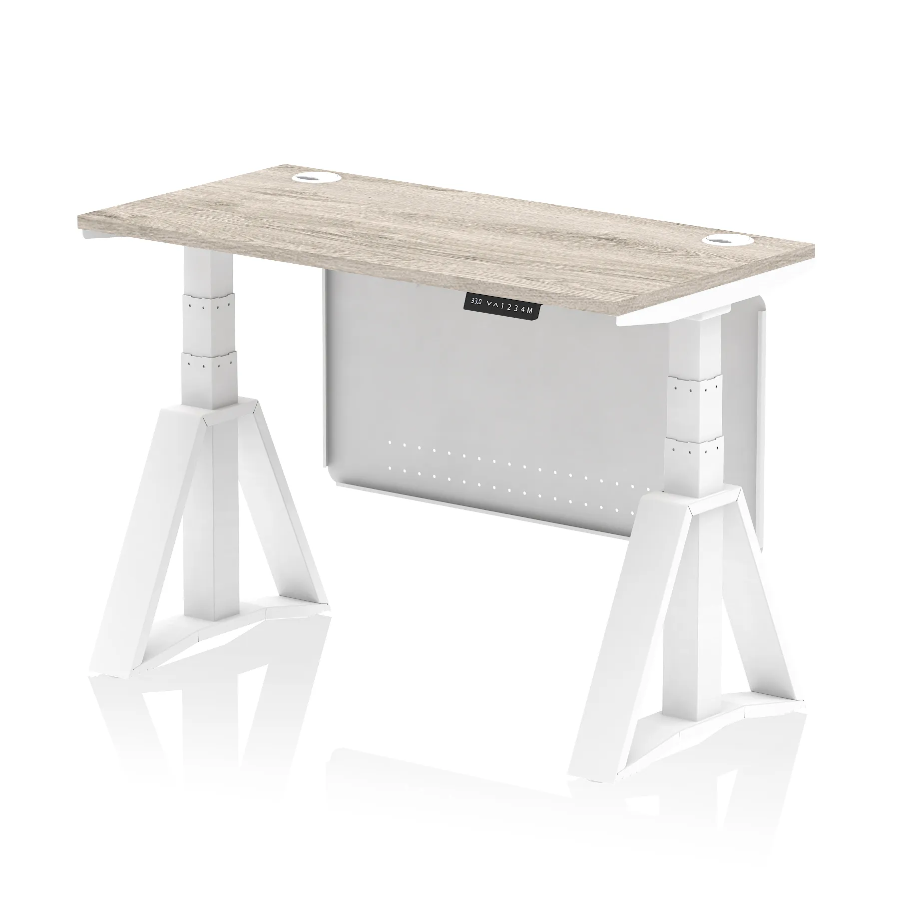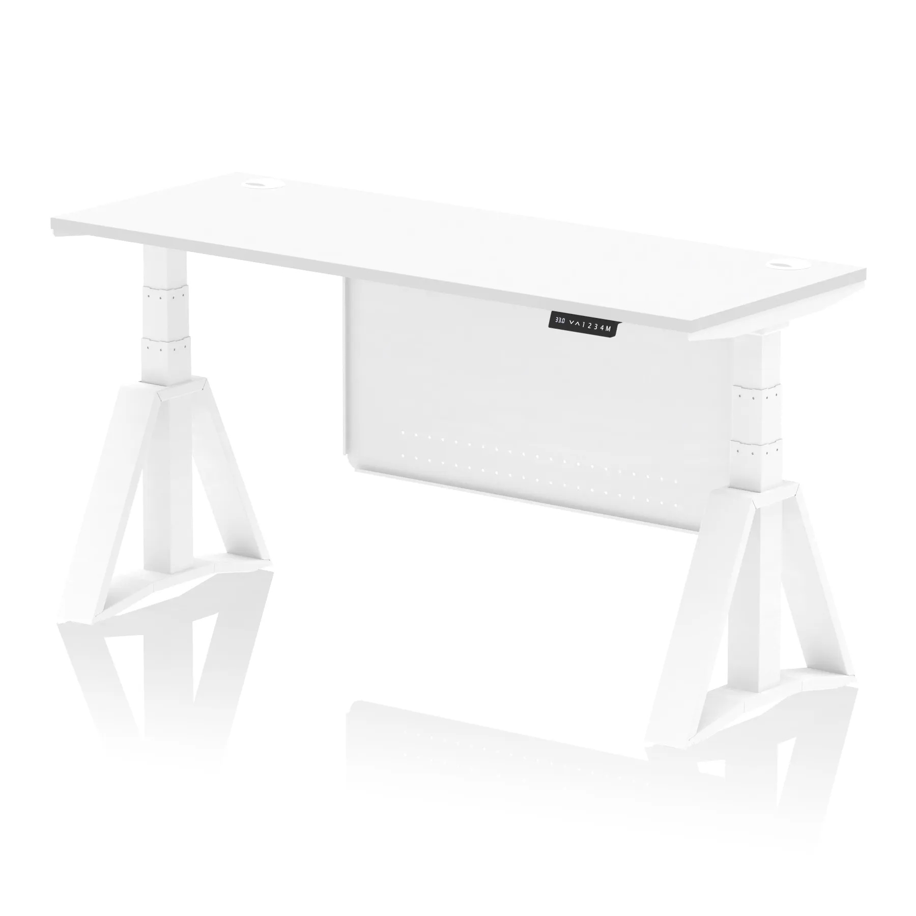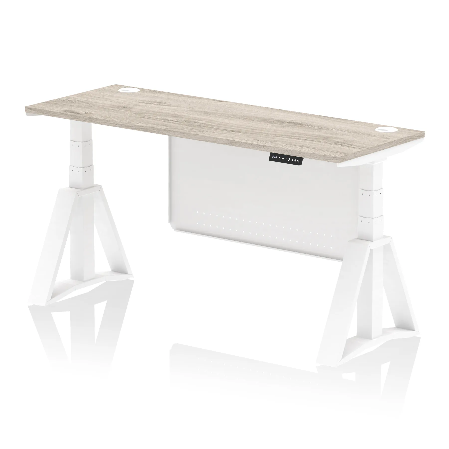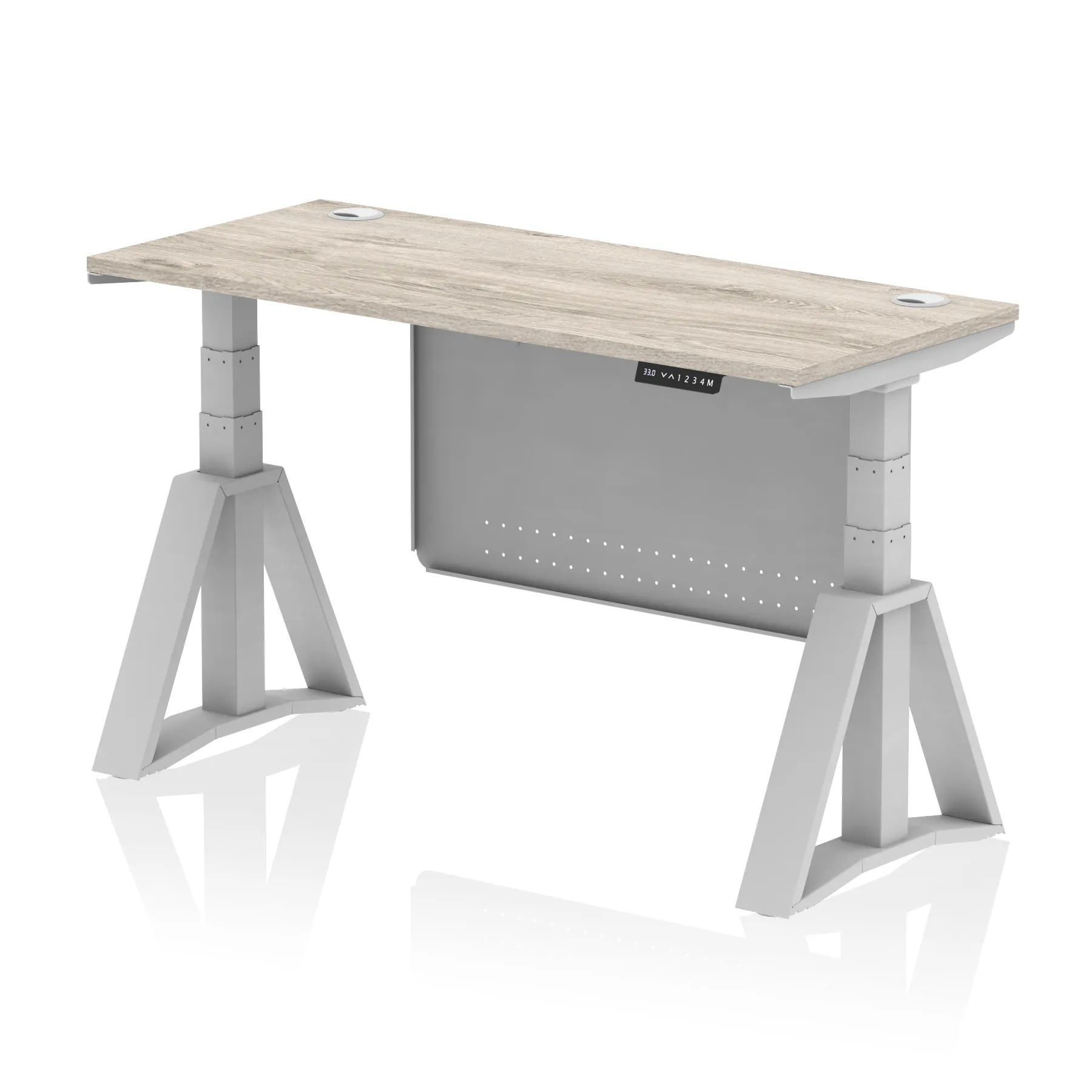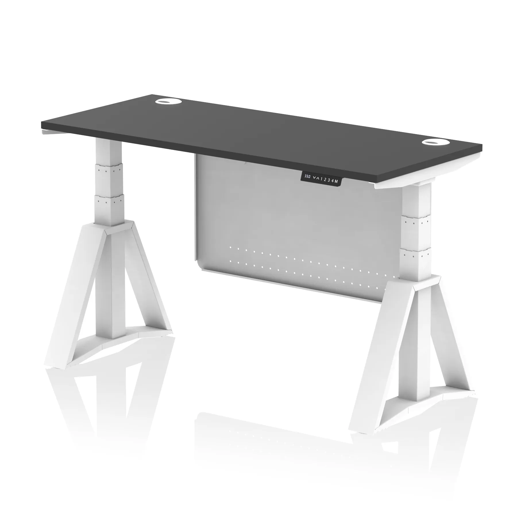 Air Height Adjustable Slimline Desk With Cable Ports With Steel Modesty Panel With Piste Foot