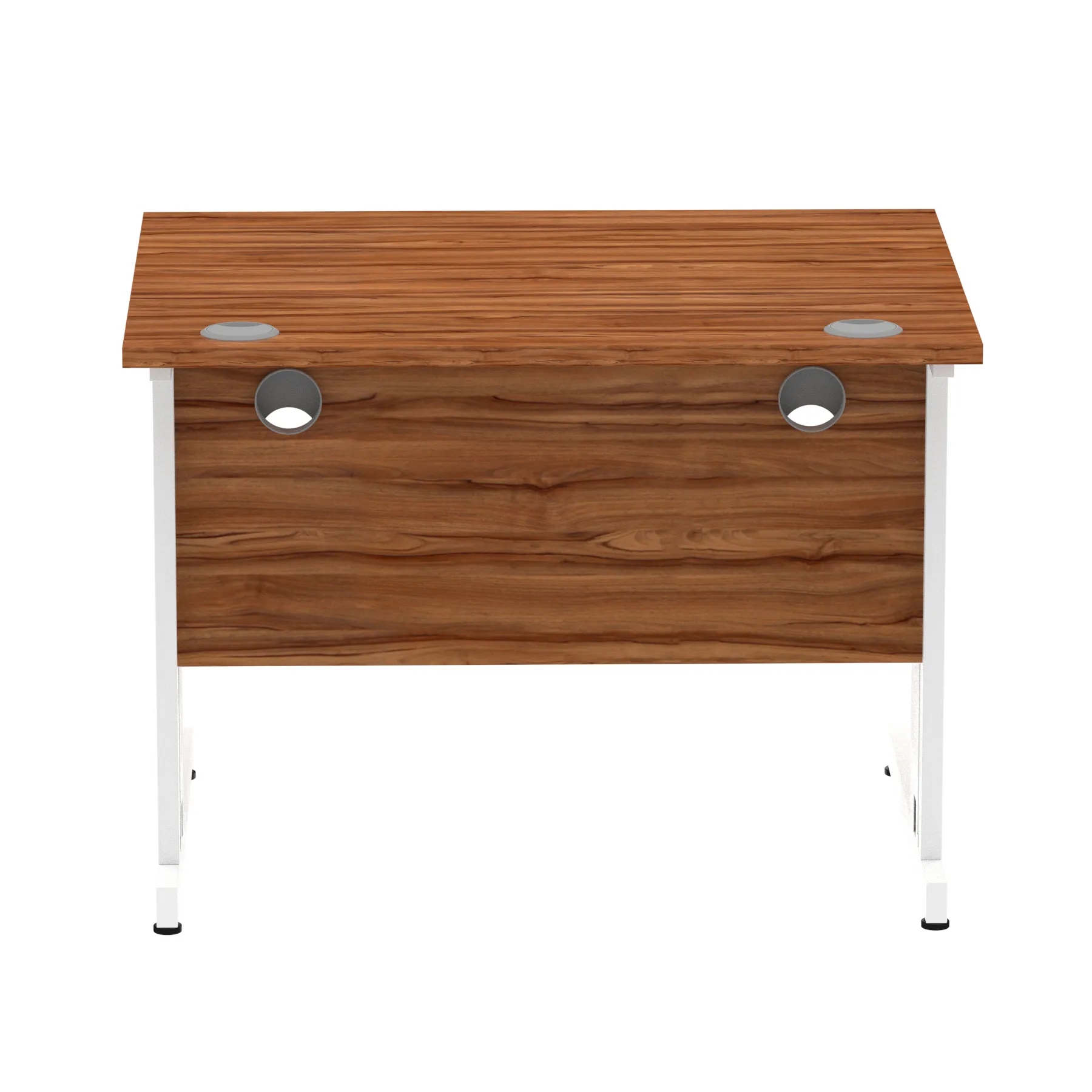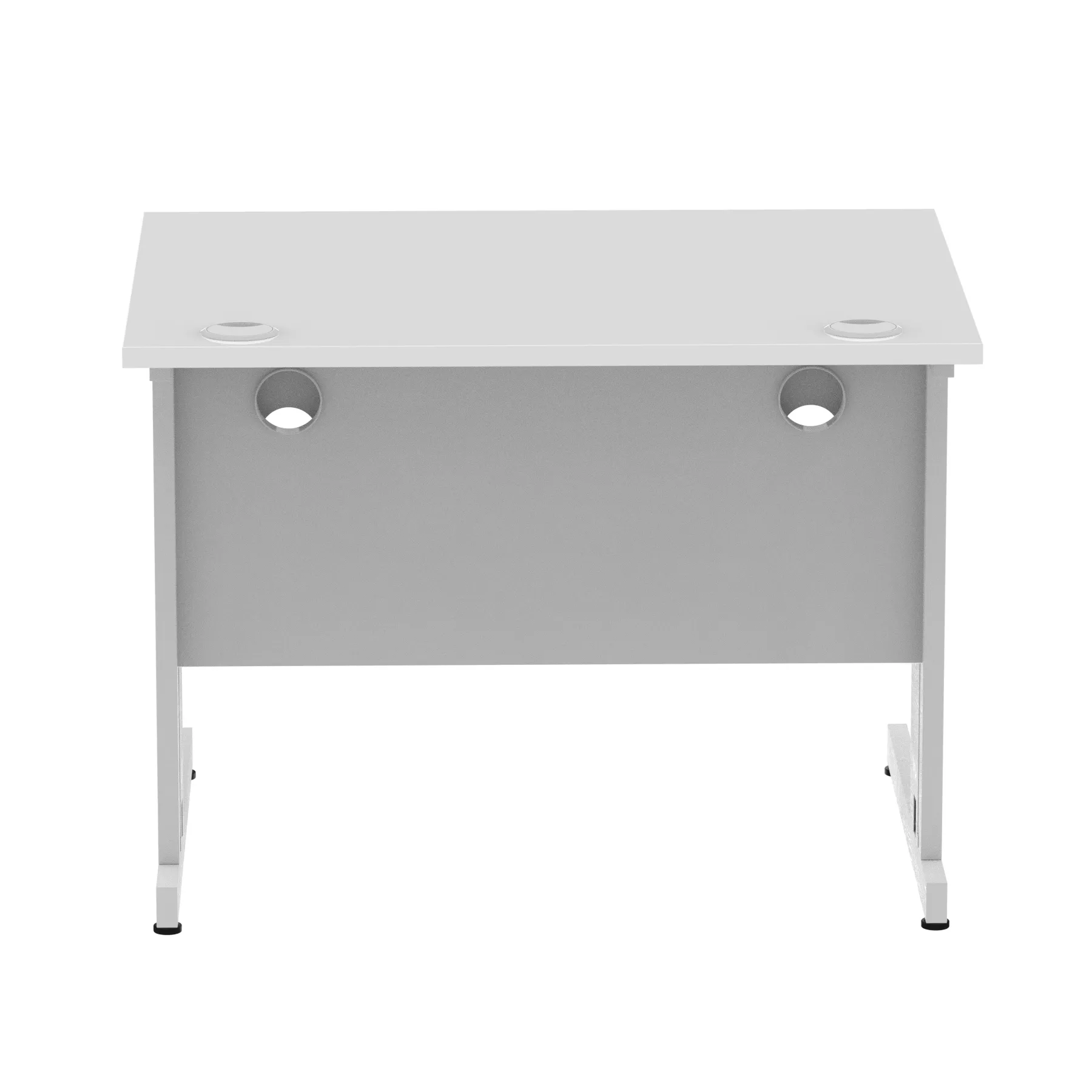 Impulse contract desk | 25mm tops | Wire management panel | Heat resistant melamine finish | 18mm modesty panel | 2mm protective abs edging | Cable managed legs | 2 cable ports | Height adjustable feet | Steel to steel fixings | 2 modesty panel slots | Deep set modesty panel (5″) allows for compatibility of most screen clamp fittings | Weight Capacity 135Kg