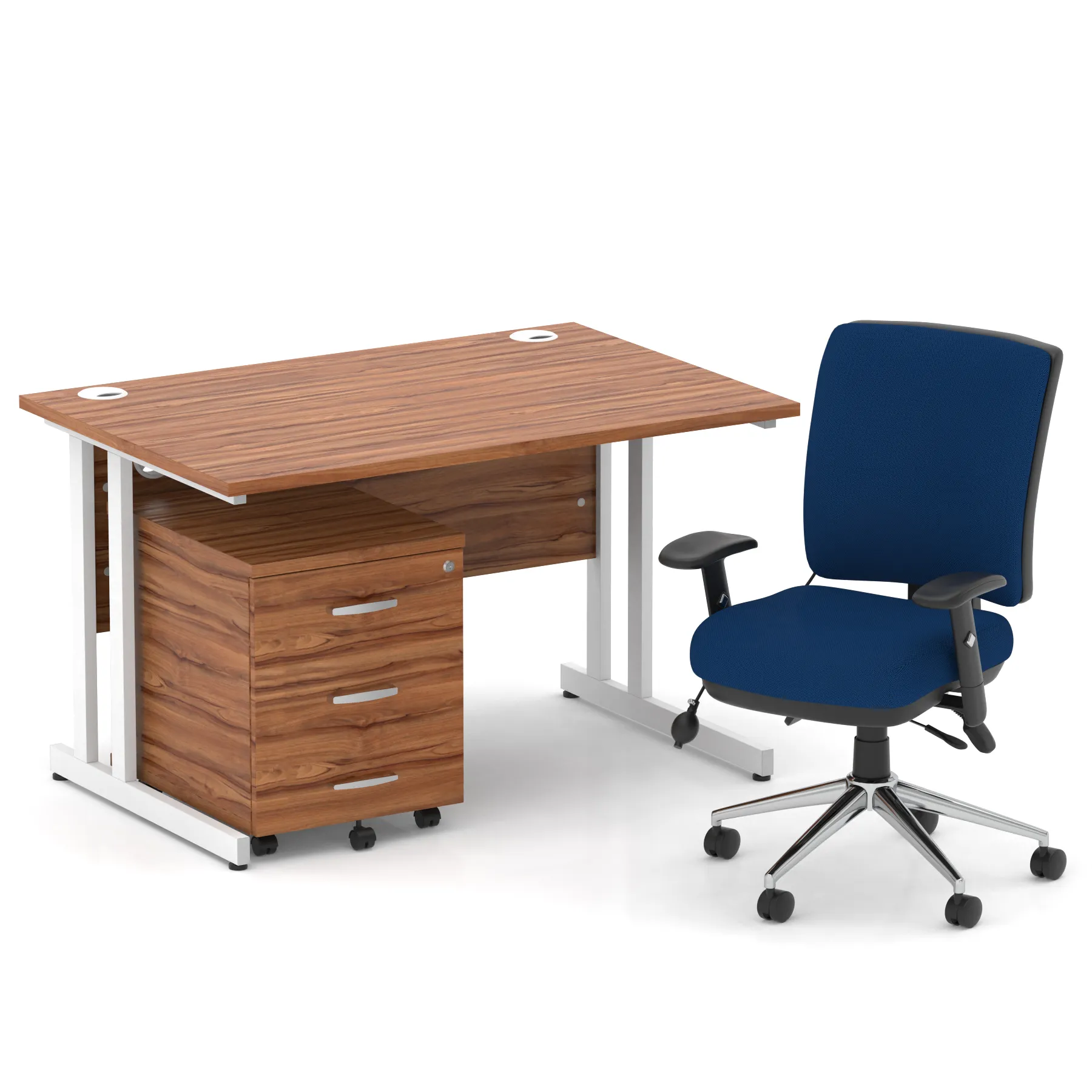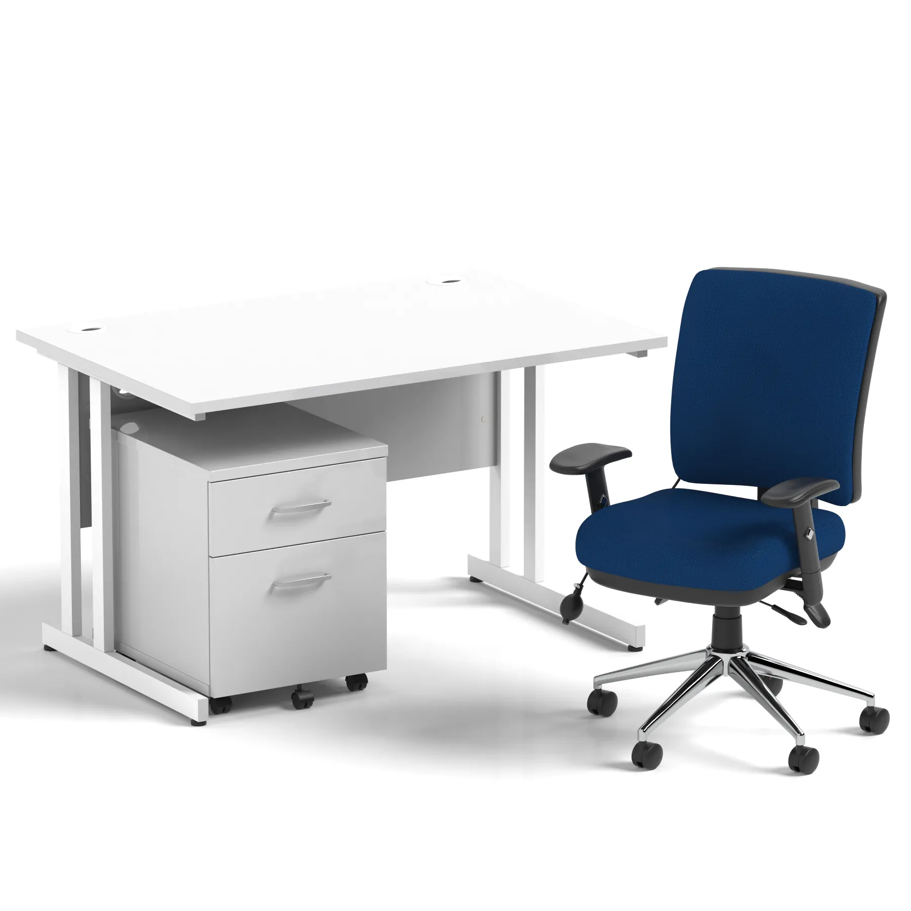 Impulse 1200mm Cantilever Straight Desk With Mobile Pedestal and Chiro Medium Back Blue Operator Chair