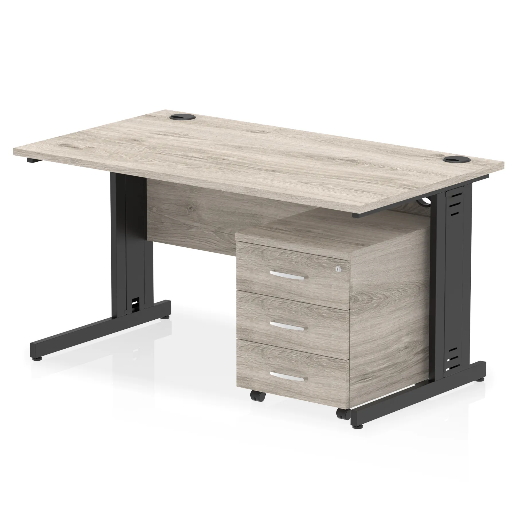 Impulse contract workstation | 25mm tops | Desk and pedestal combined | Heat resistant beech melamine finish | 18mm modesty panel | 2mm protective abs edging | Silver coated double strut legs with cable management | Multiple cable ports | Height adjustable feet | Steel to steel fixings | Modesty panel slots wire slots | Deep set modesty panel (5″) allows for compatibility of most screen clamp fittings