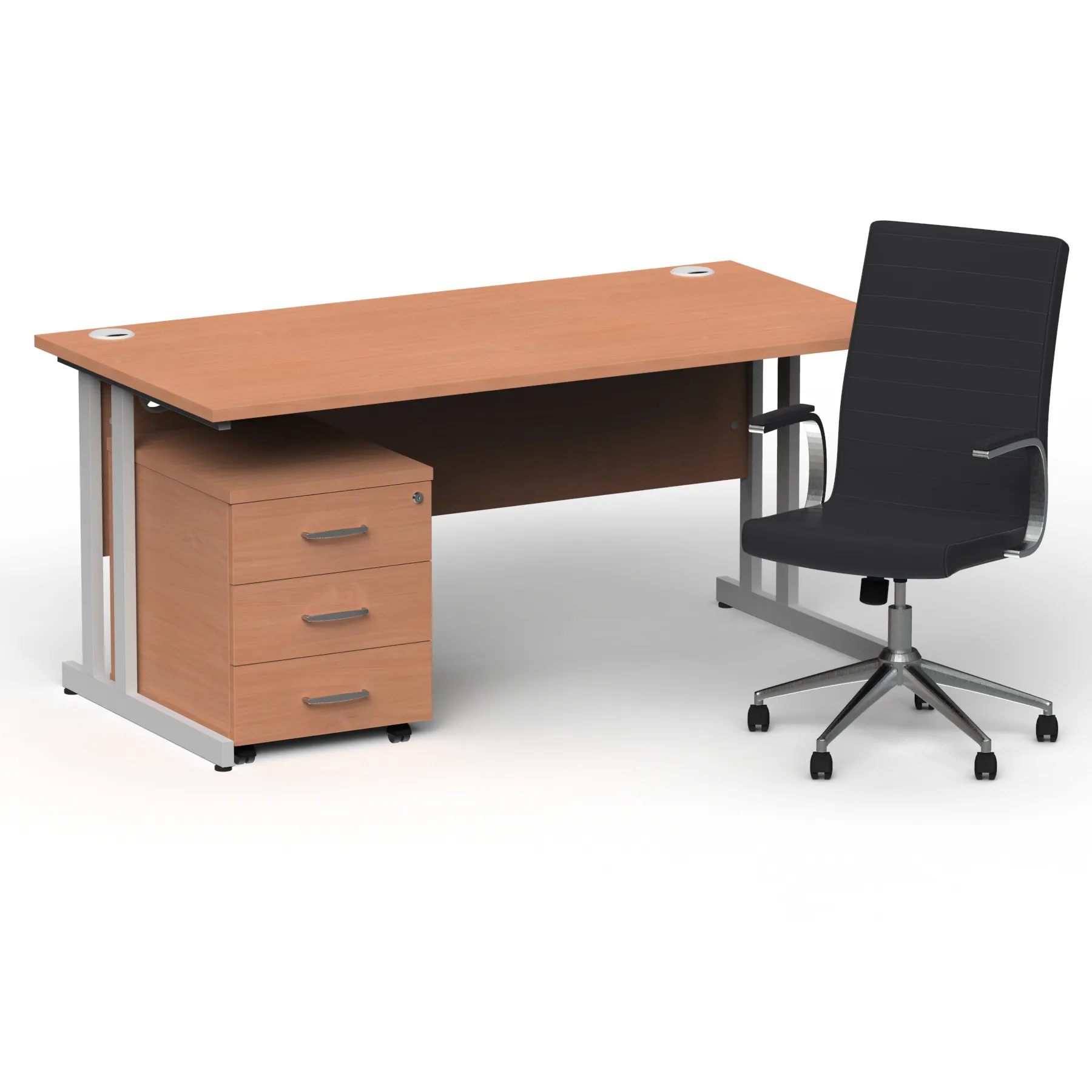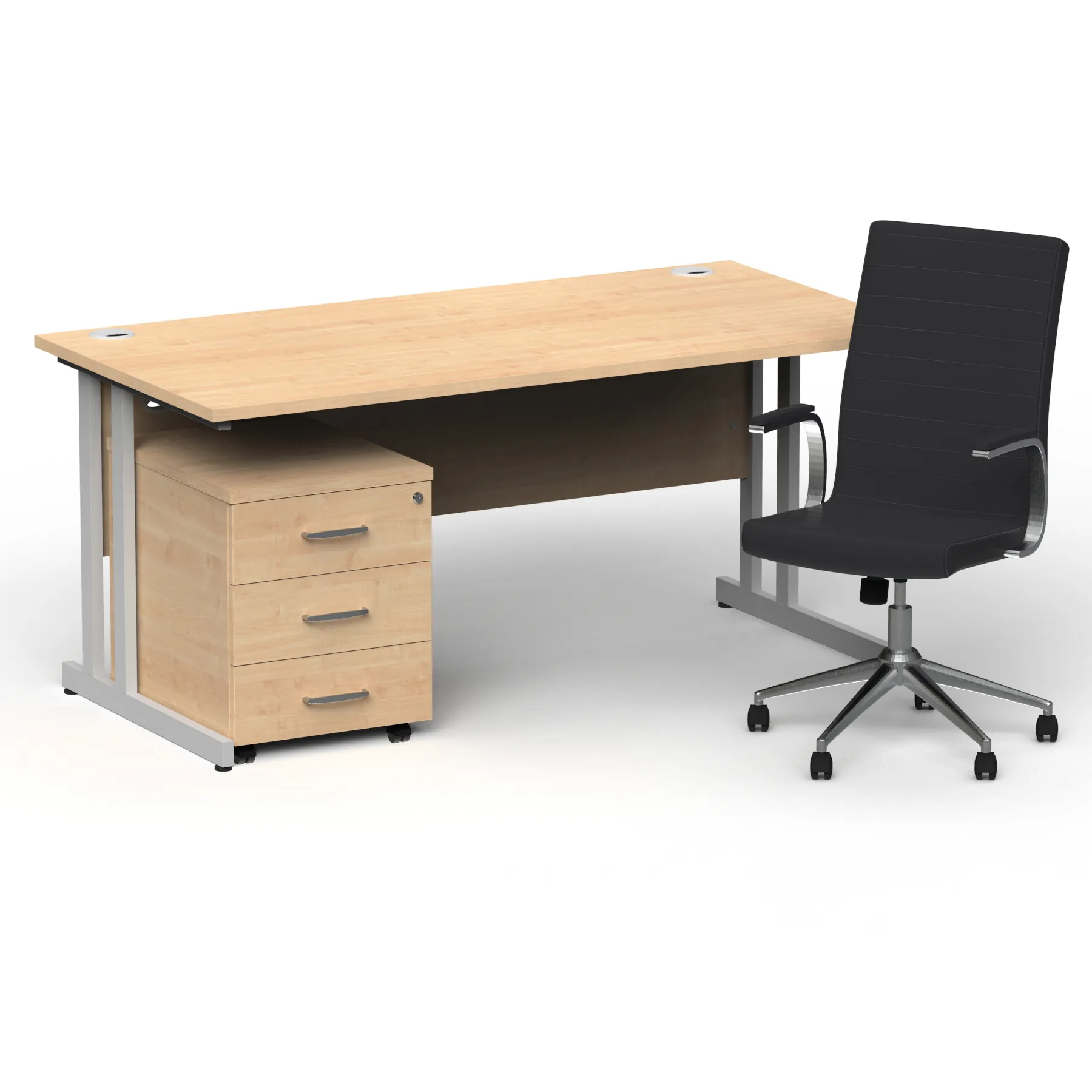 Impulse 1600mm Cantilever Straight Desk With Mobile Pedestal and Ezra Black Executive Chair