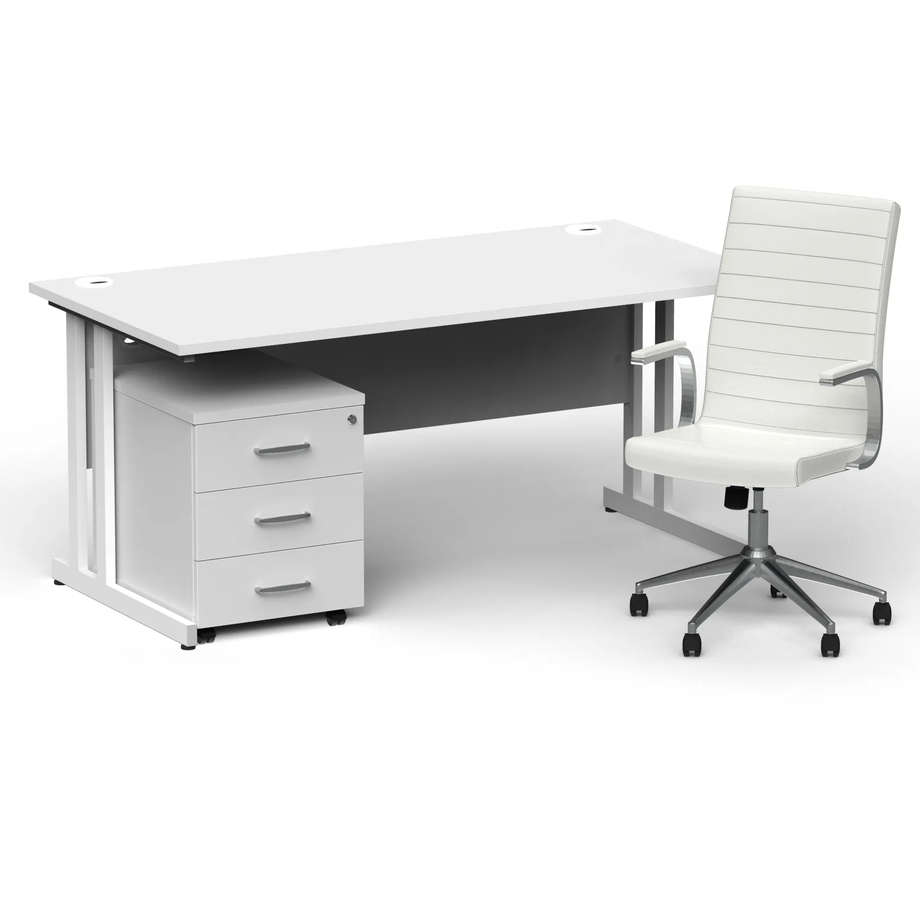 Impulse 1600mm Cantilever Straight Desk With Mobile Pedestal and Ezra White Executive Chair