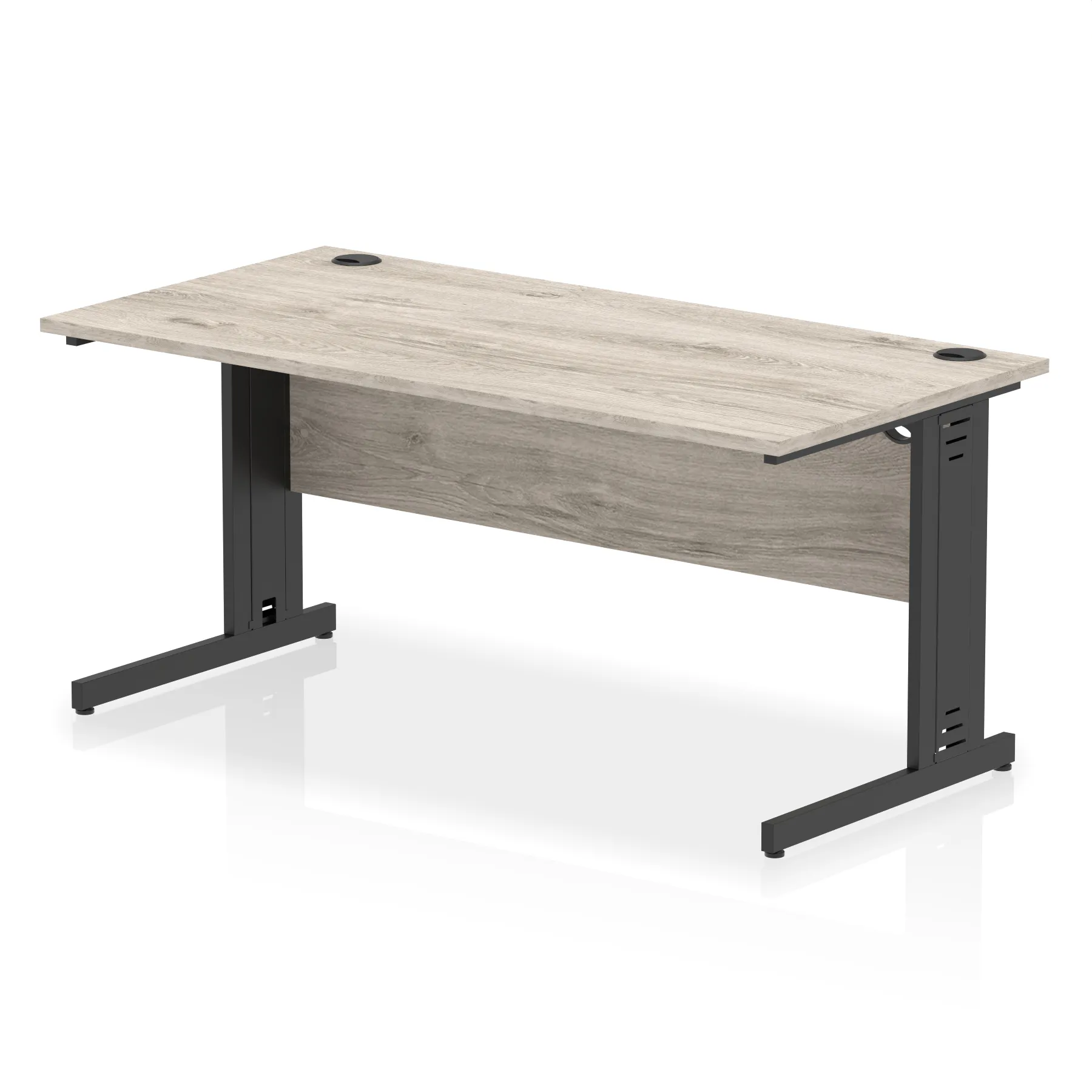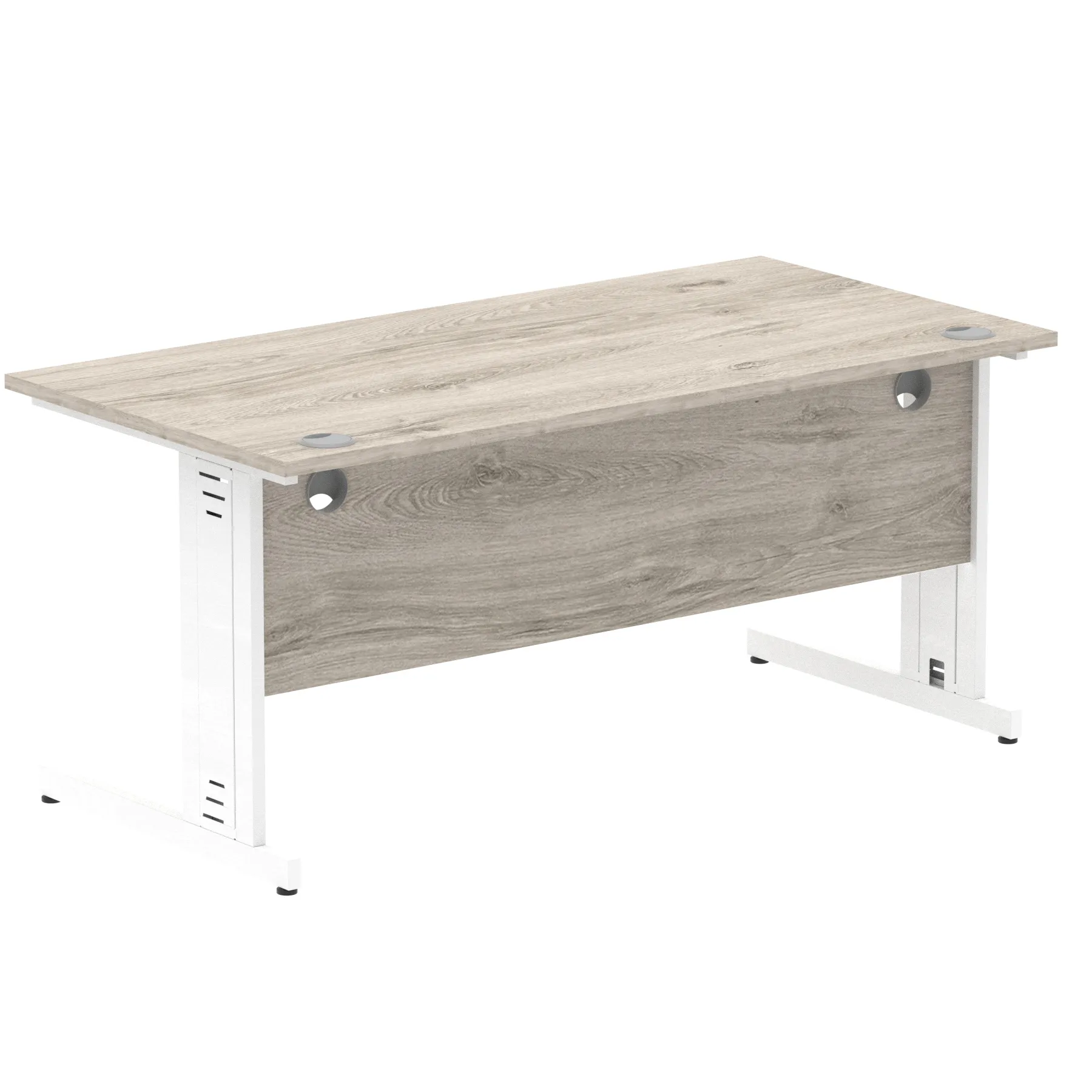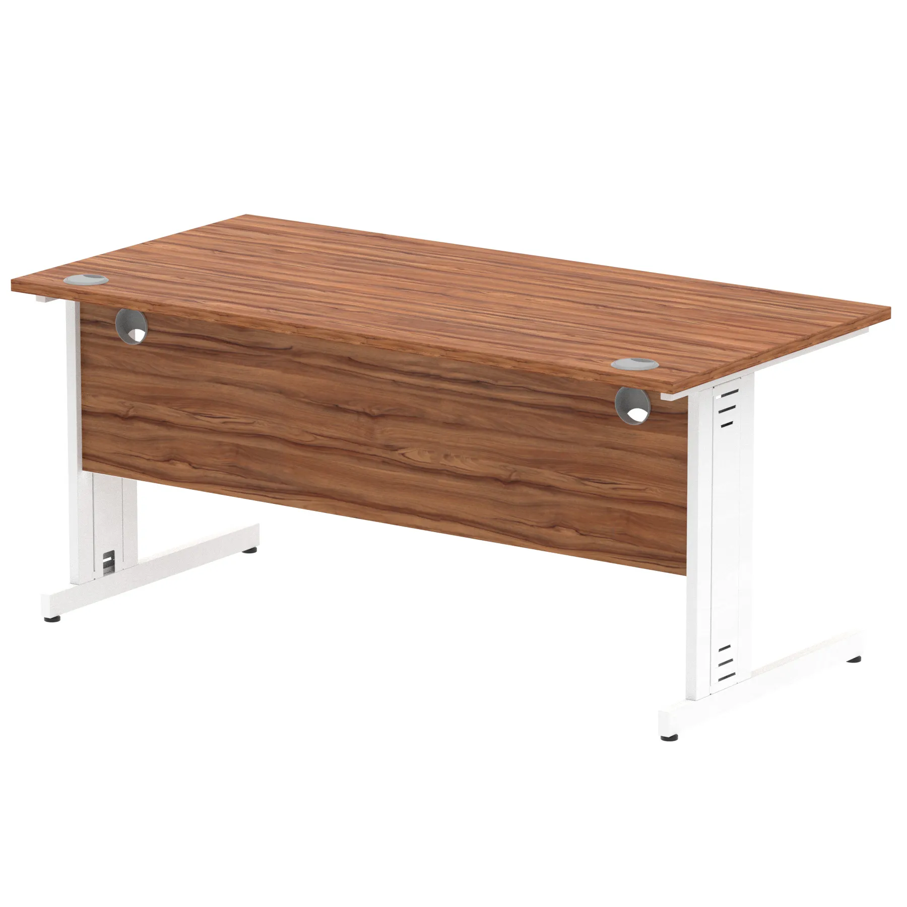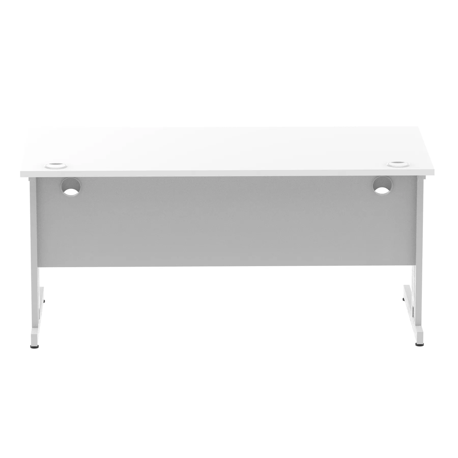 Impulse contract desk | 25mm tops | wire management panel | Heat resistant melamine finish | 18mm modesty panel | 2mm protective abs edging | Silver coated double strut legs | 2 cable ports | Height adjustable feet | Steel to steel fixings | 2 modesty panel slots | Deep set modesty panel (5″) allows for compatibility of most screen clamp fittings | Weight Capacity 135Kg