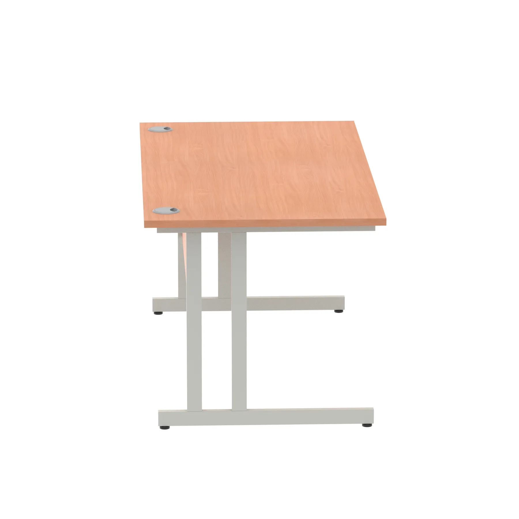 Impulse contract desk | 25mm tops | Heat resistant melamine finish | 18mm modesty panels | 2mm protective abs edging | Silver coated double strut legs | 2 cable ports | Height adjustable feet | Steel to steel fixings | 2 modesty panels slots Deep set modesty panel (5″) allows for compatibility of most screen clamp fittings | Weight Capacity 135Kg
