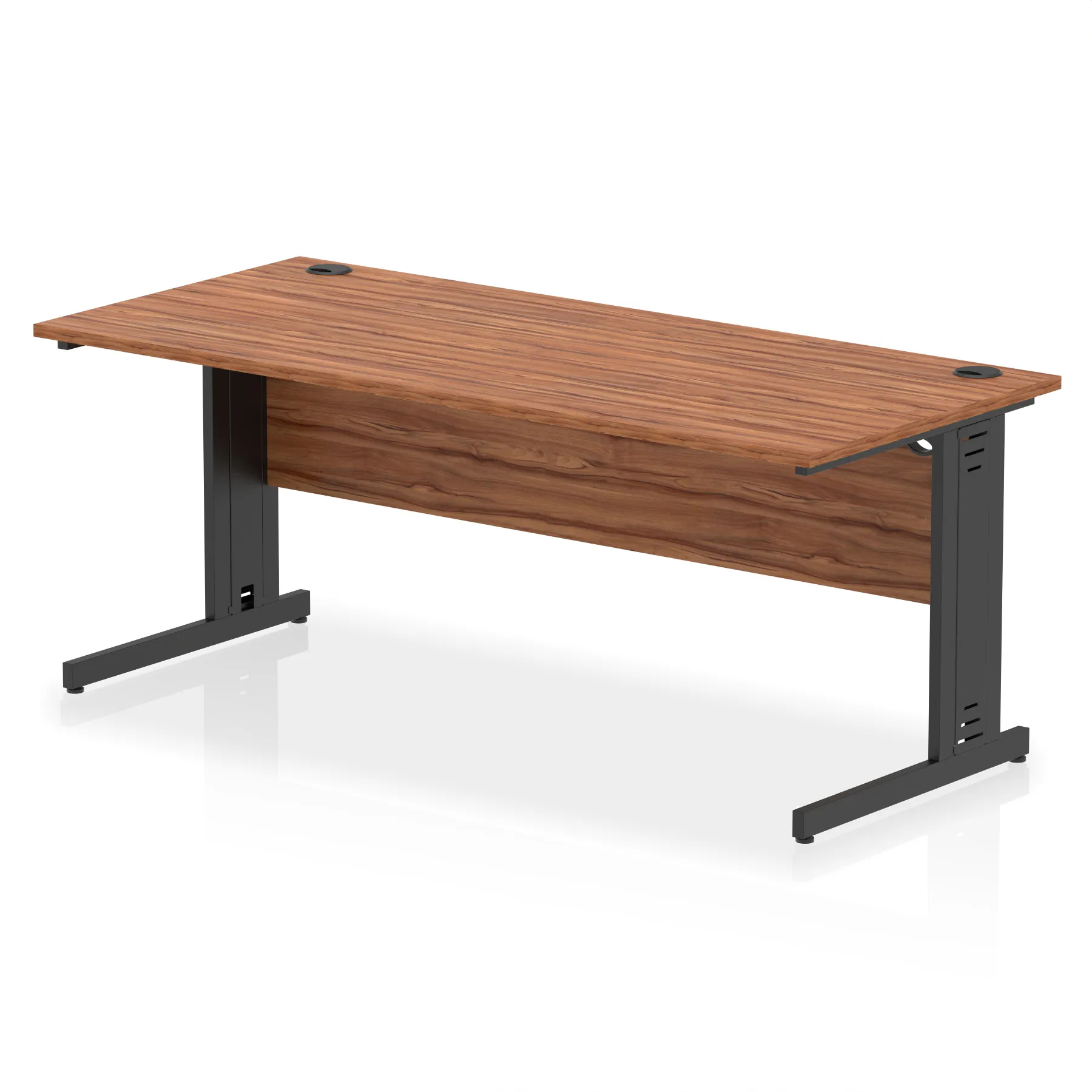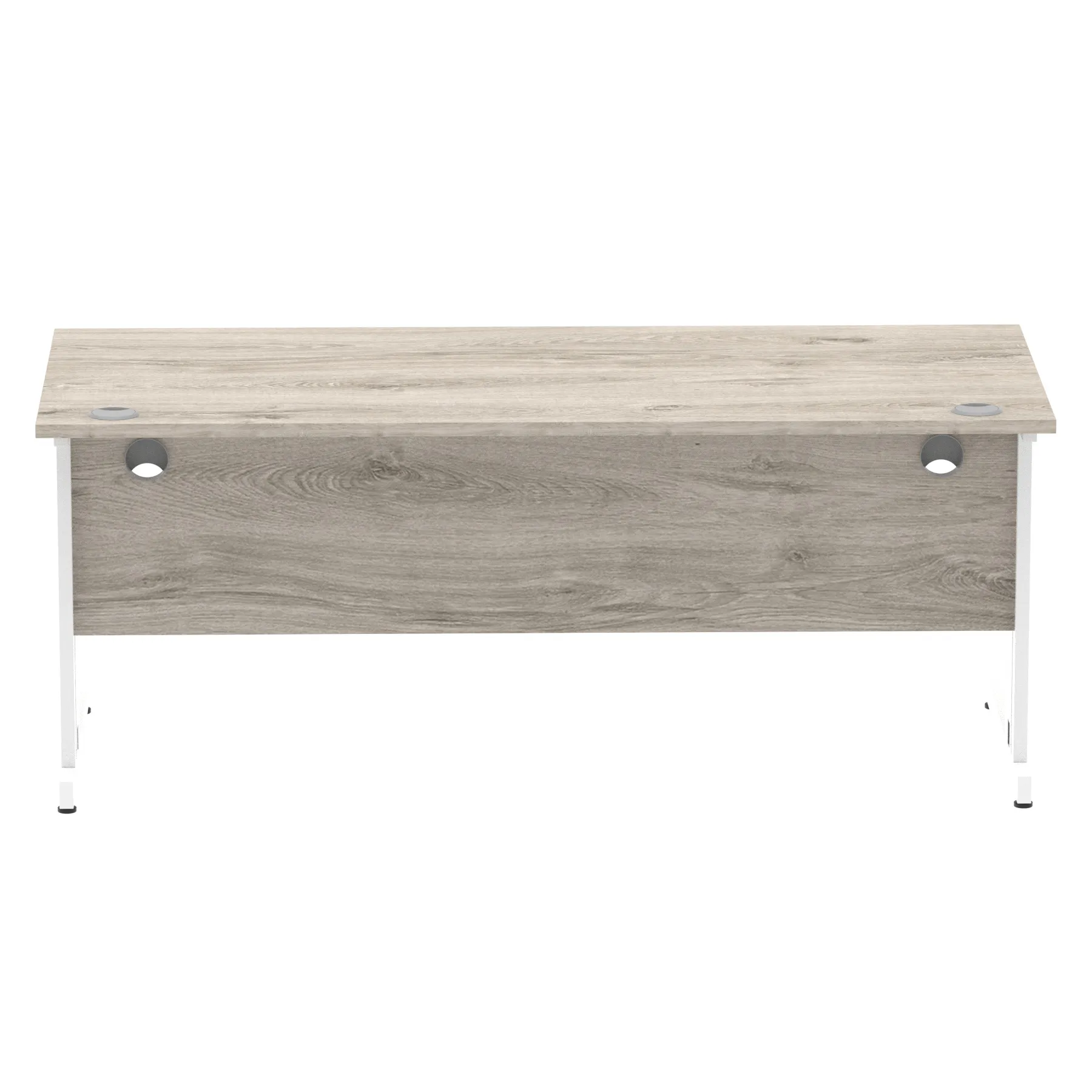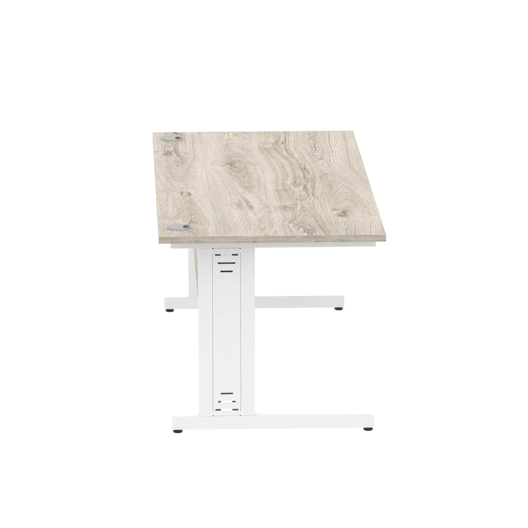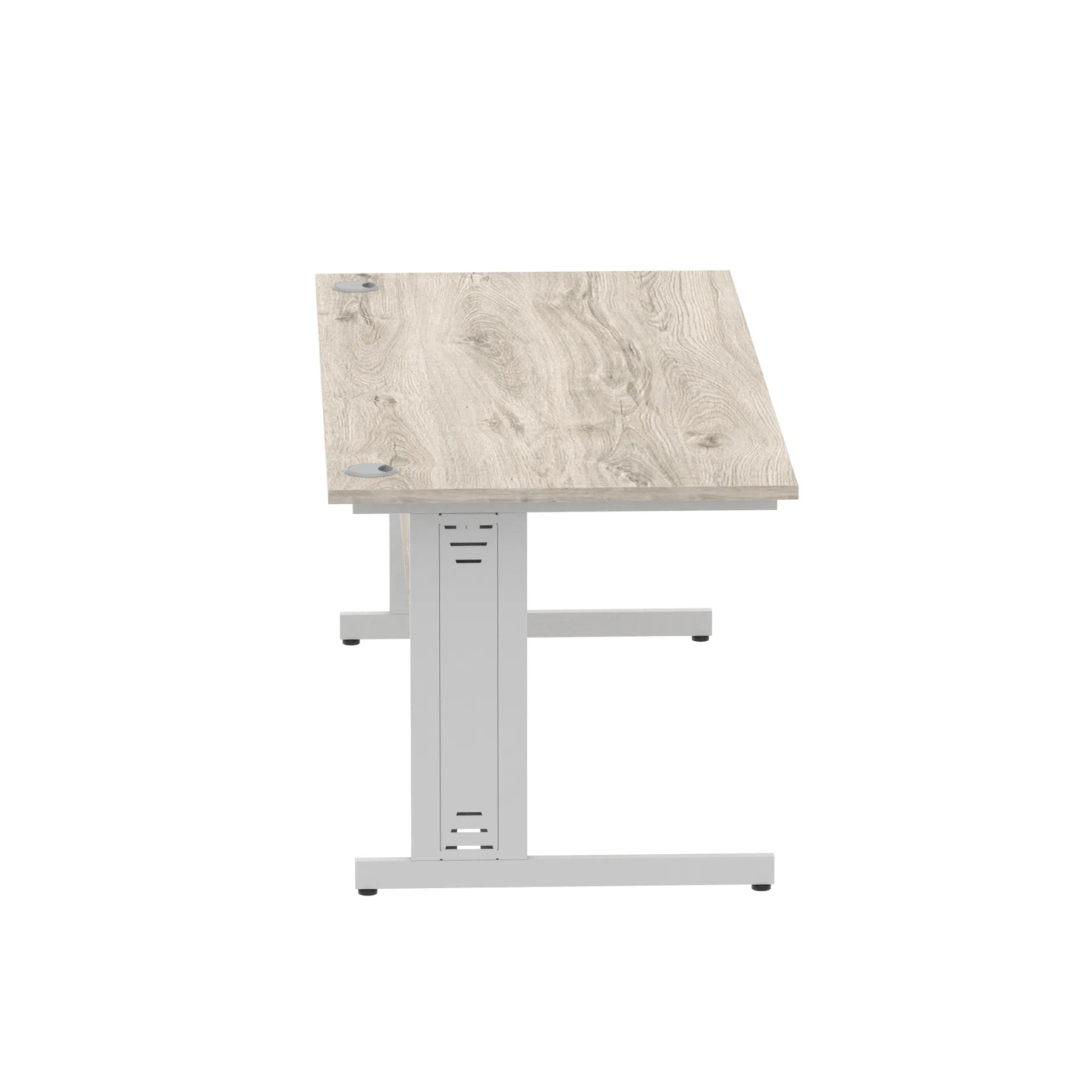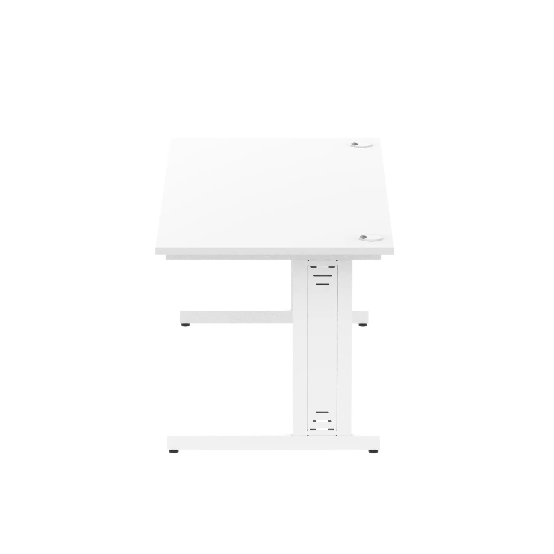 Impulse contract desk | 25mm tops | wire management panel | Heat resistant melamine finish | 18mm modesty panel | 2mm protective abs edging | Silver coated double strut legs | 2 cable ports | Height adjustable feet | Steel to steel fixings | 2 modesty panel slots | Deep set modesty panel (5″) allows for compatibility of most screen clamp fittings | Weight Capacity 135Kg