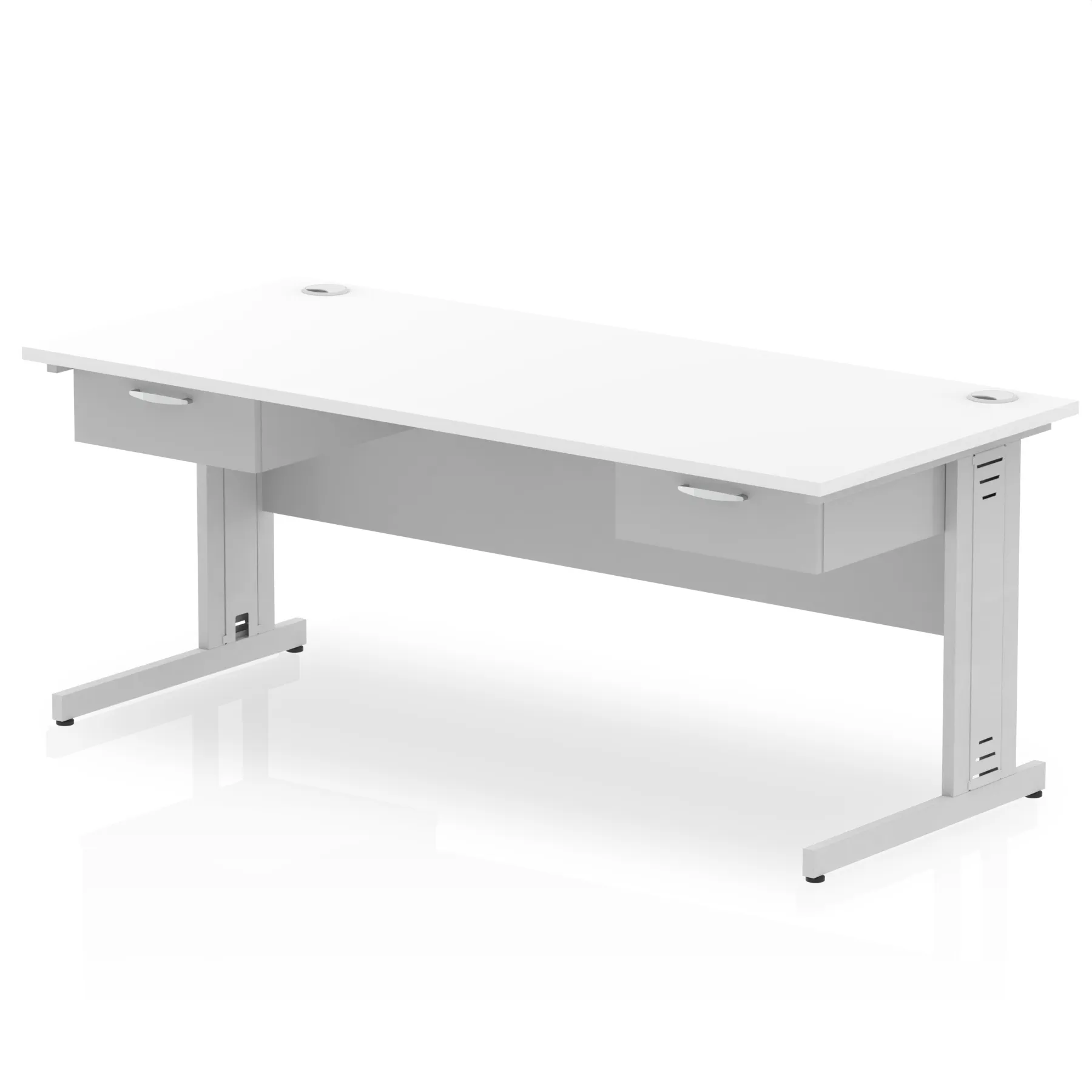 Impulse Cable Managed Straight Desk Silver Frame With Two One Drawer Fixed Pedestals