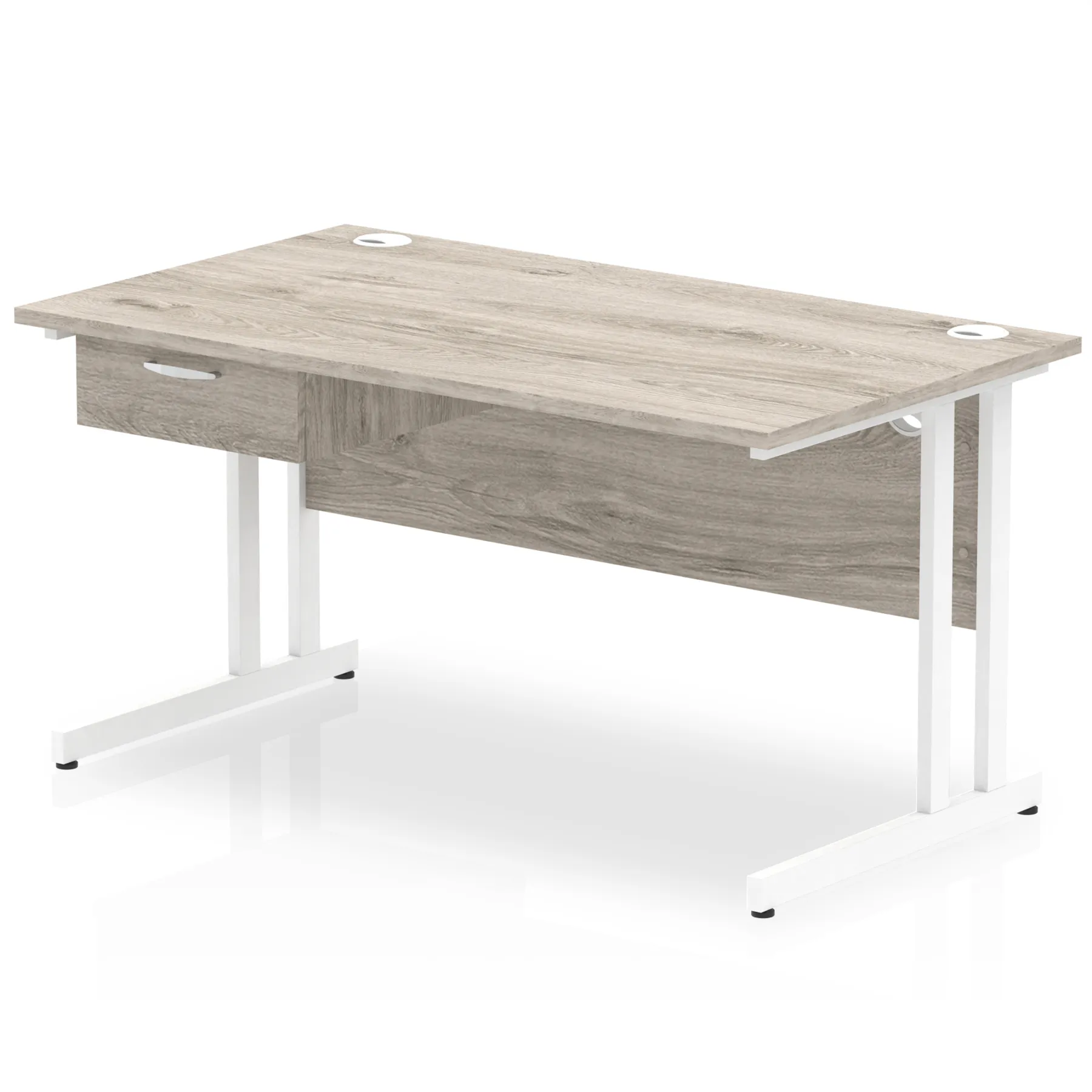 Impulse Cantilever Straight Desk White Frame With Single One Drawer Fixed Pedestal