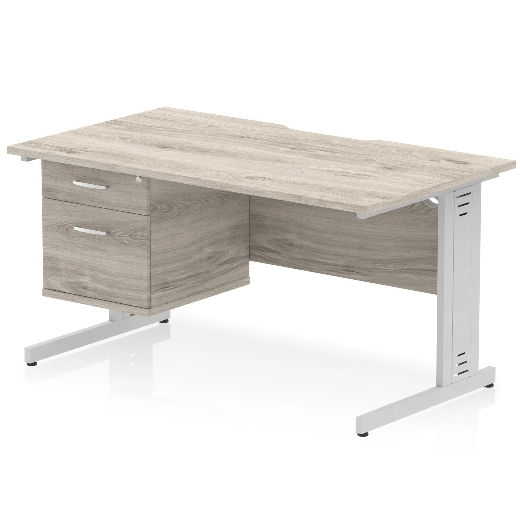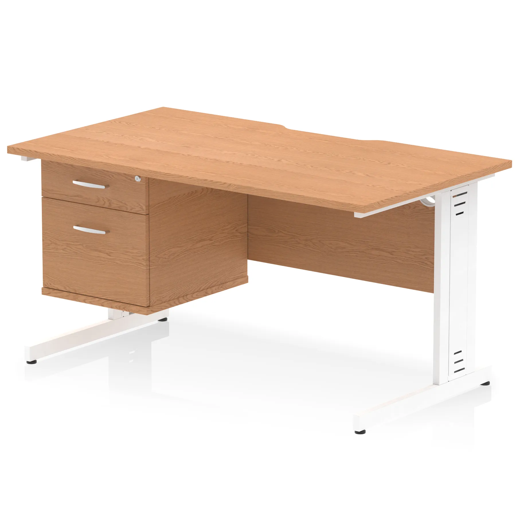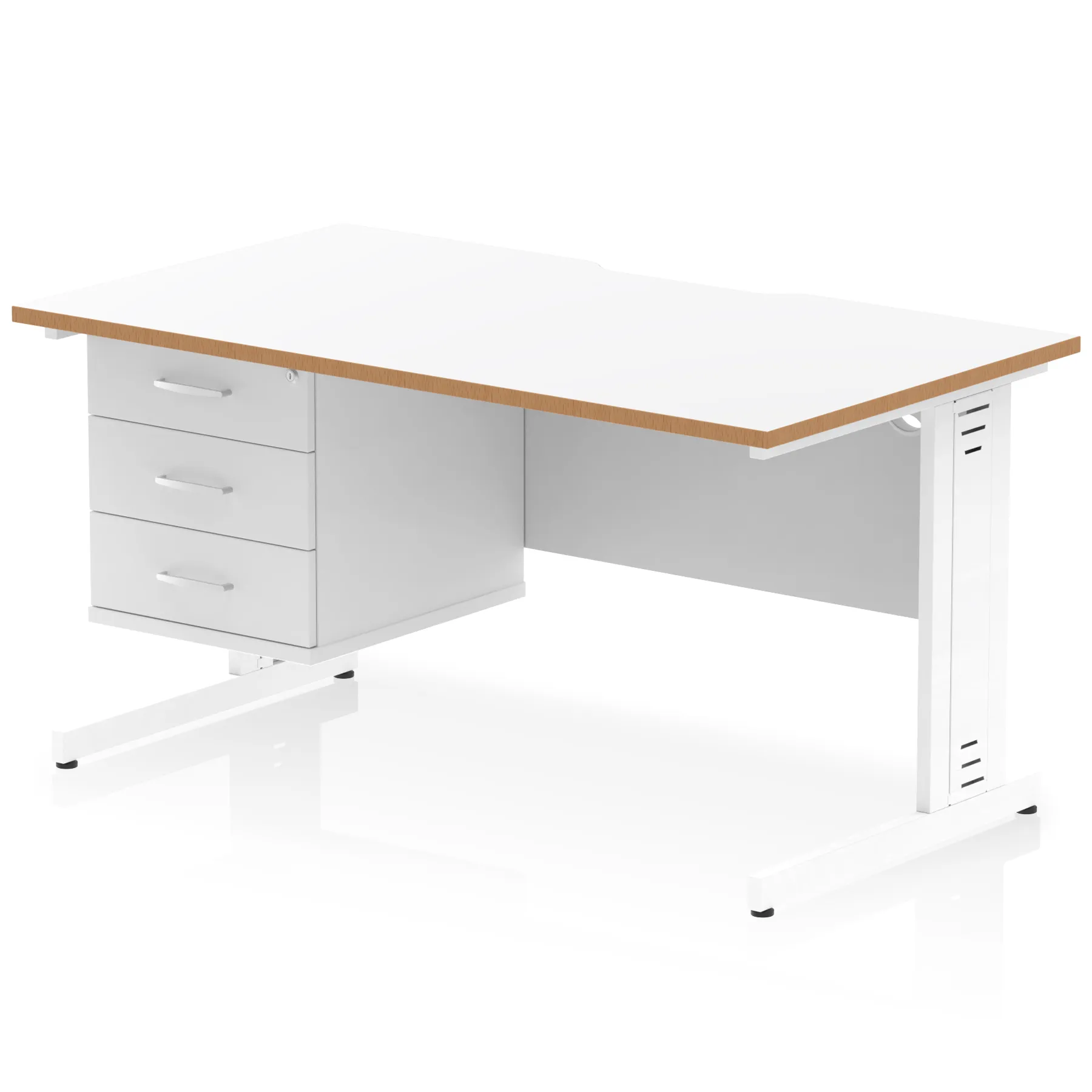 Impulse Scalloped Edge 1400mm Cable Managed Straight Desk With Single Fixed Pedestal