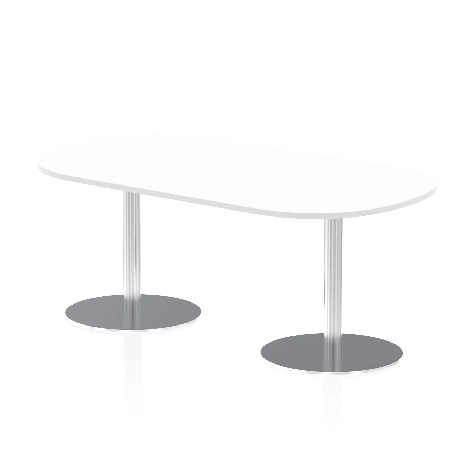Italia is the ultimate style statement – whether for meetings, conferences, boardrooms or dining areas. This table is topped by the clean lines of a heatproof, clean looking melamine worktop that requires minimum maintenance. Underneath the brushed steel trumpet base and post design looks striking and has the practicality of eliminating any knee and leg traps underneath.