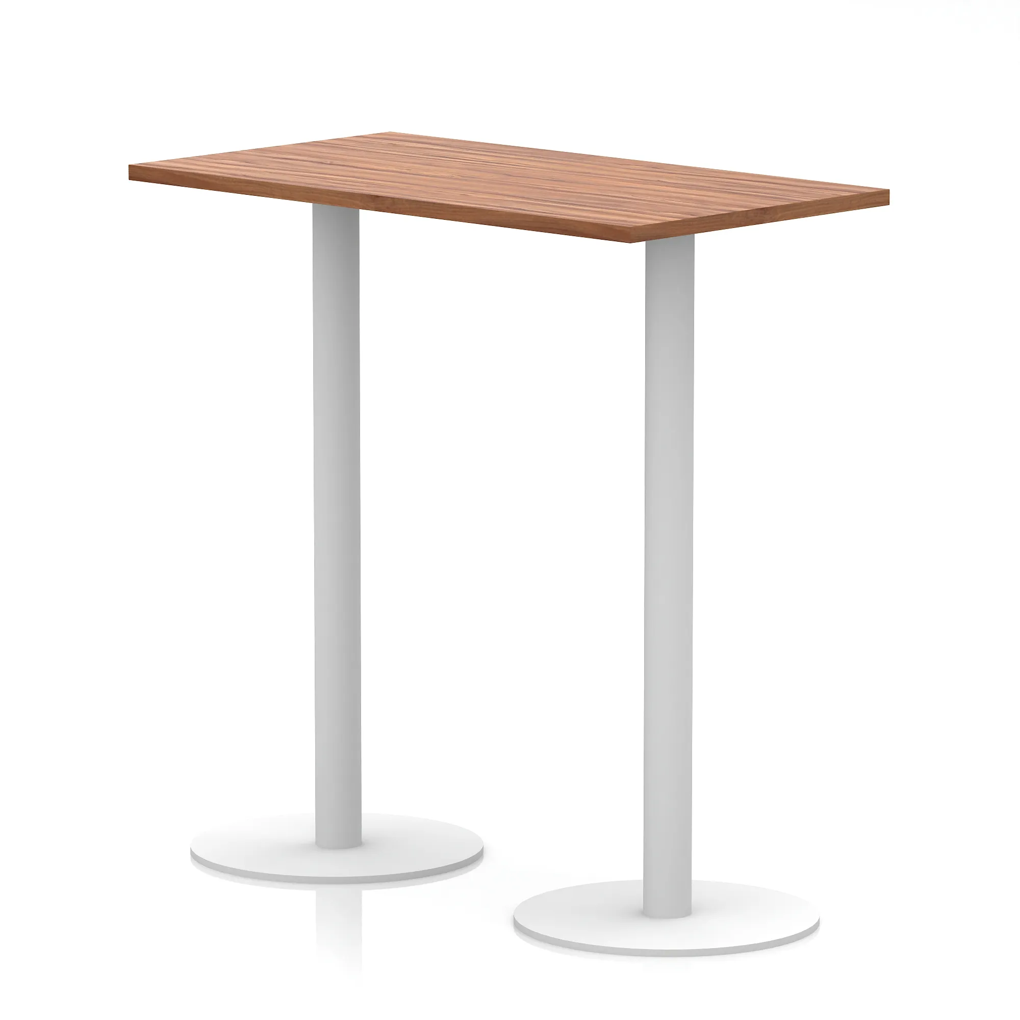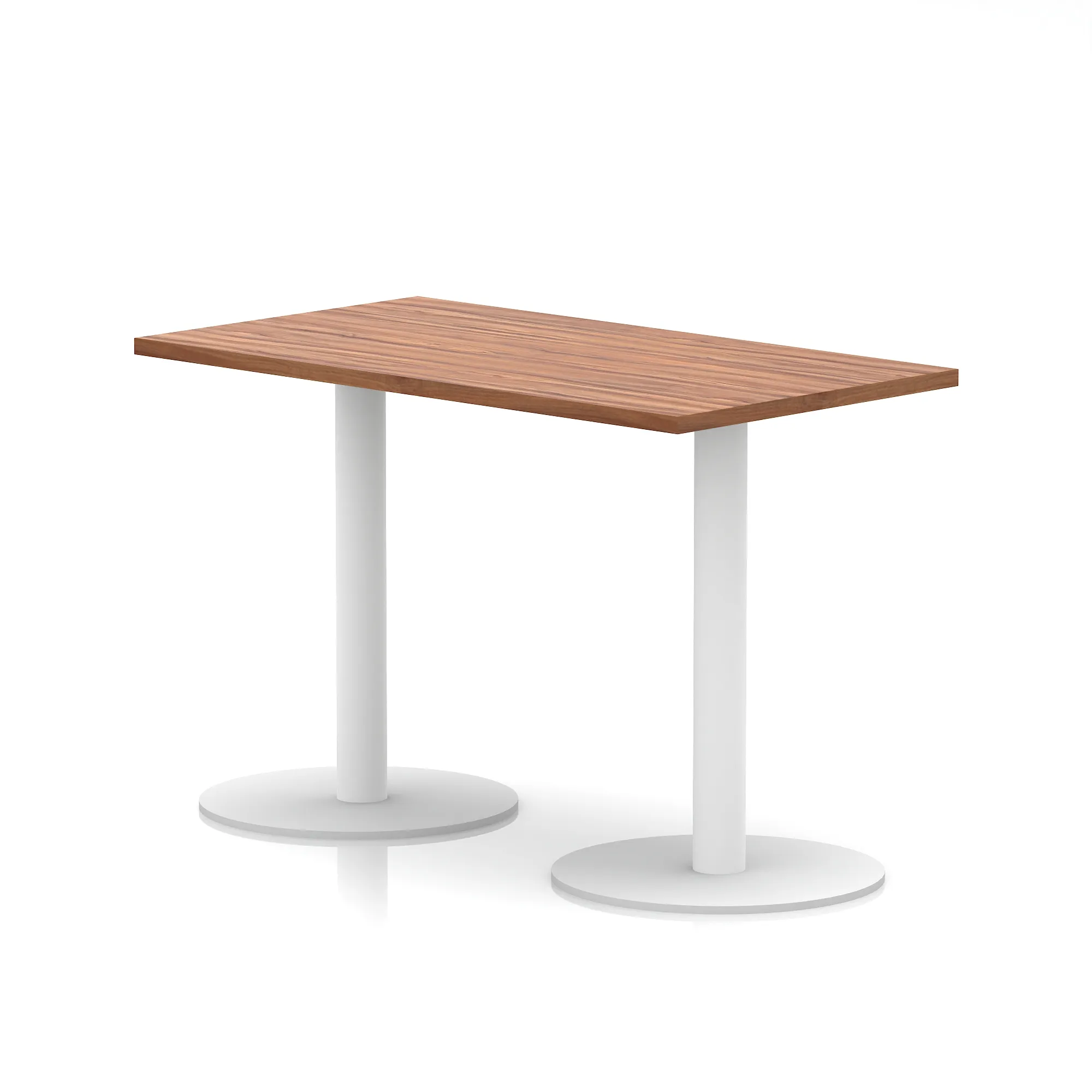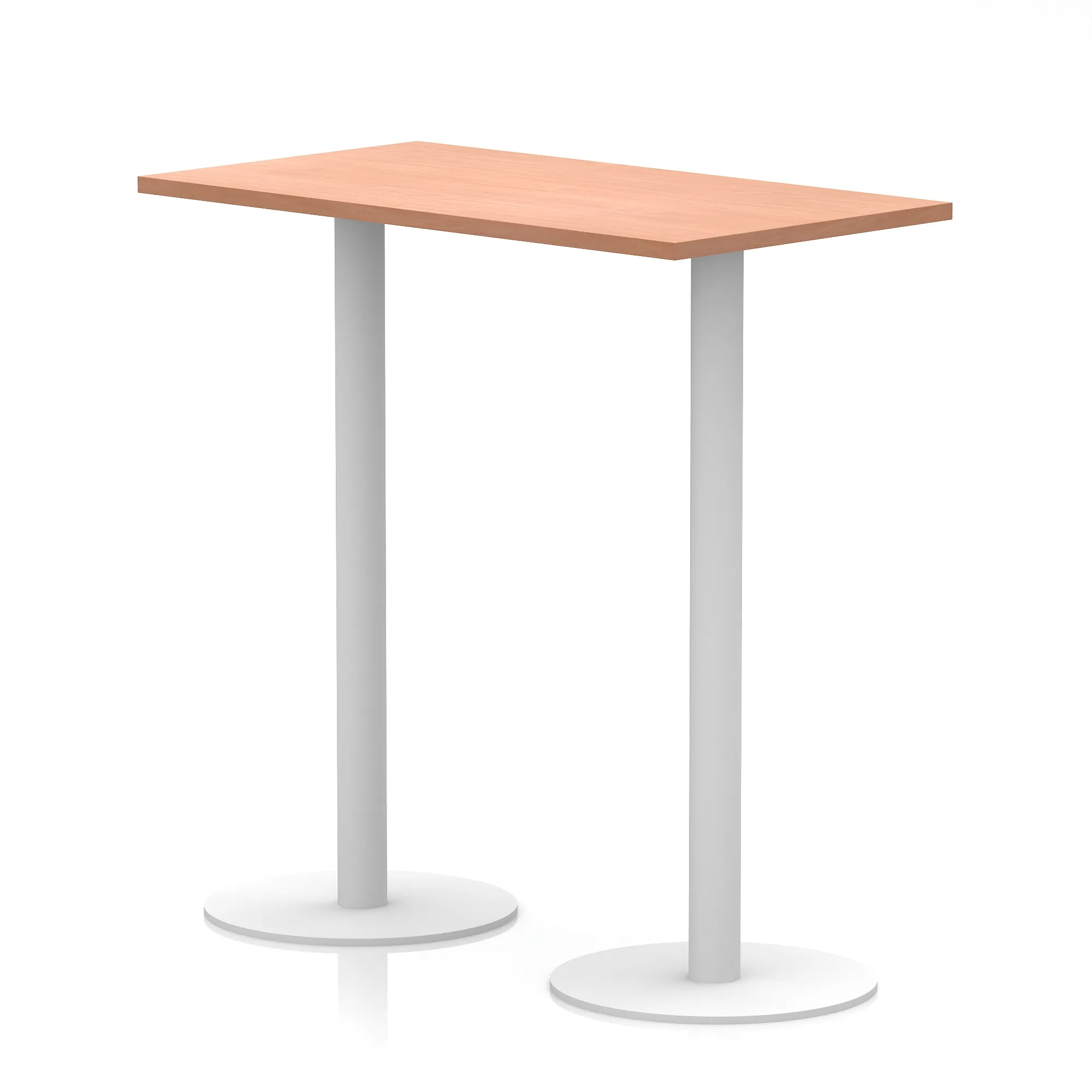 25mm thick desk top profile | Dual, brushed stainless steel effect circular base (580mm diameter) | Brushed stainless steel pillars (76mm diameter) | Weighted base provides stability | Two part bolted frame system