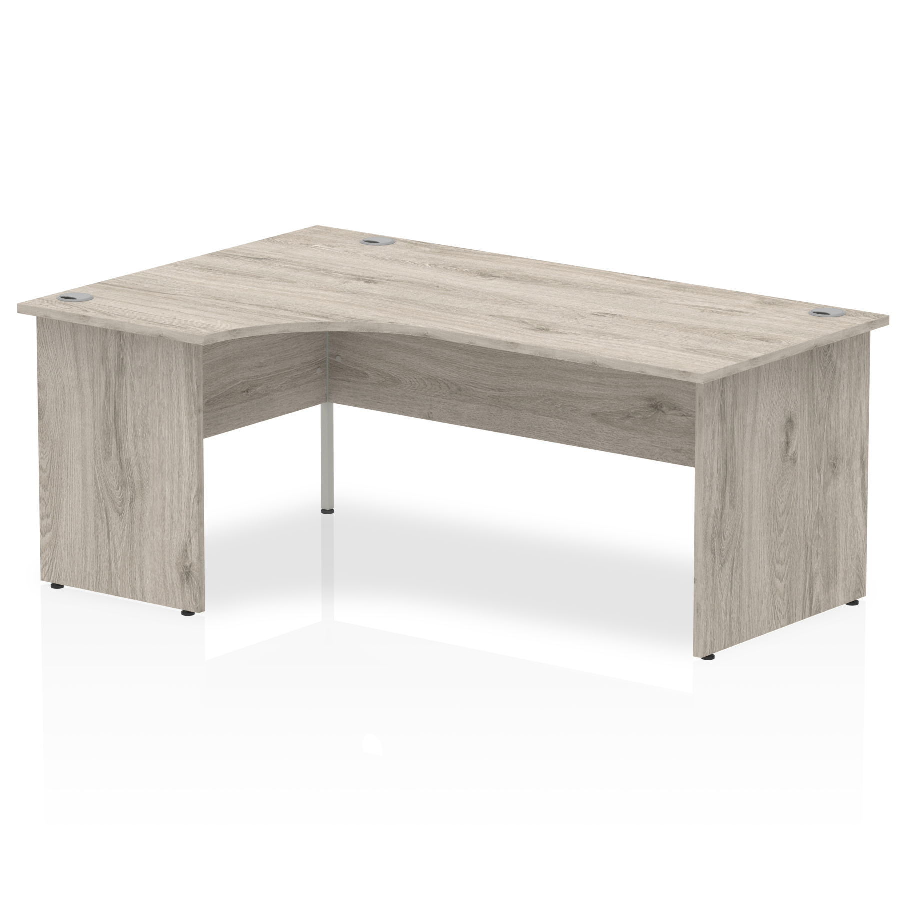 Impulse contract 1400 wide crescent desk | 25mm tops | Heat resistant beech melamine finish | 18mm modesty panel | 2mm protective abs edging | Matching wood panel end legs | 3 cable ports | Height adjustable feet | Steel to steel fixings | 3 modesty panel slots | 600 deep | Deep set modesty panel (5″) allows for compatibility of most screen clamp fittings | Weight Capacity 135Kg