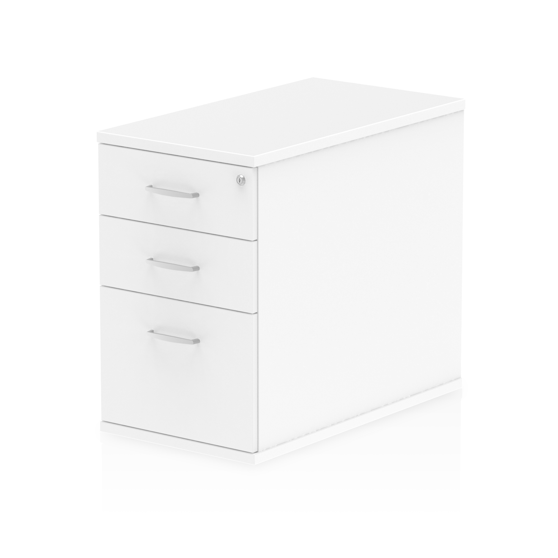 Impulse desk high pedestal | 25mm top | Full 18mm back board | 2mm abs protective edges | Steel handles | Solid box drawer construction | Fits A4 or foolscap filing | Steel to steel fixings | Lockable drawers | Heat resistant beech melamine finish | Extends desk space