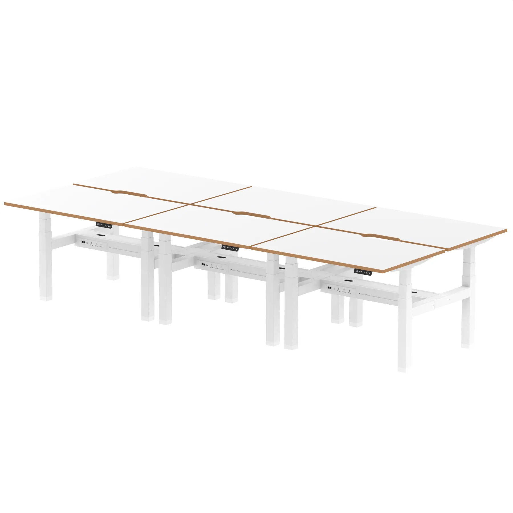 • Integrated with three UK plug sockets, two data ports, a USB-C and a USB port on each desk