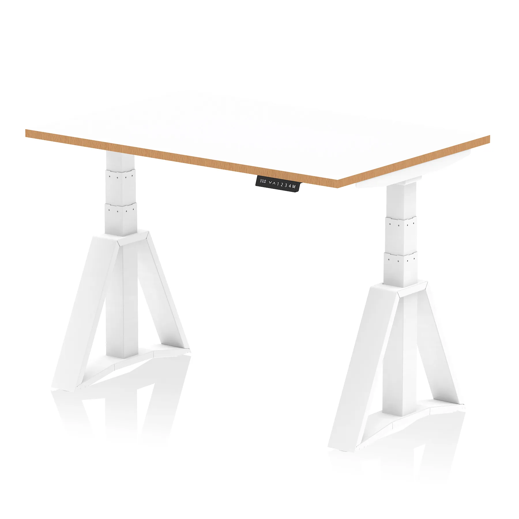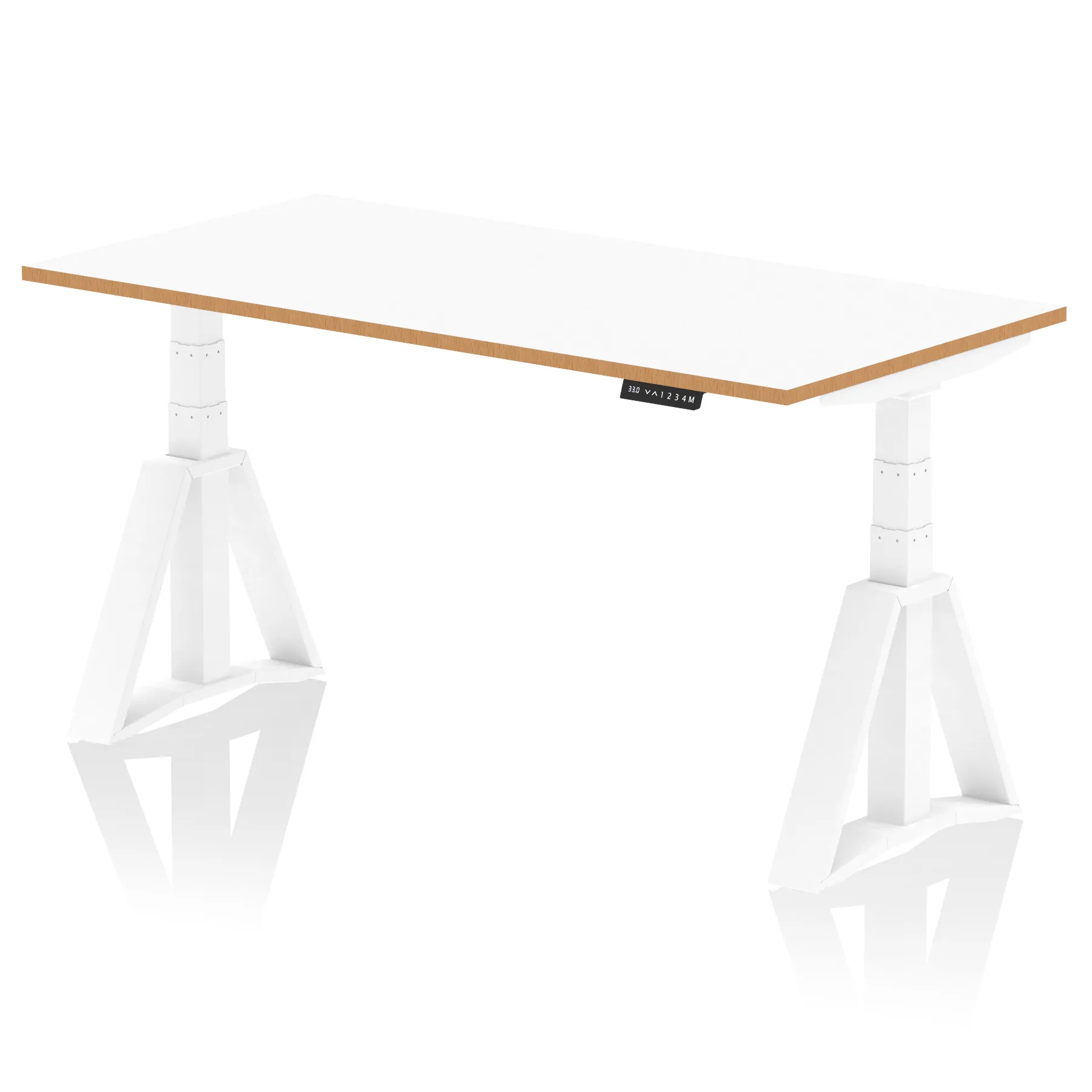 Oslo Air Height Adjustable Desk White Top Natural Wood Edge White Frame