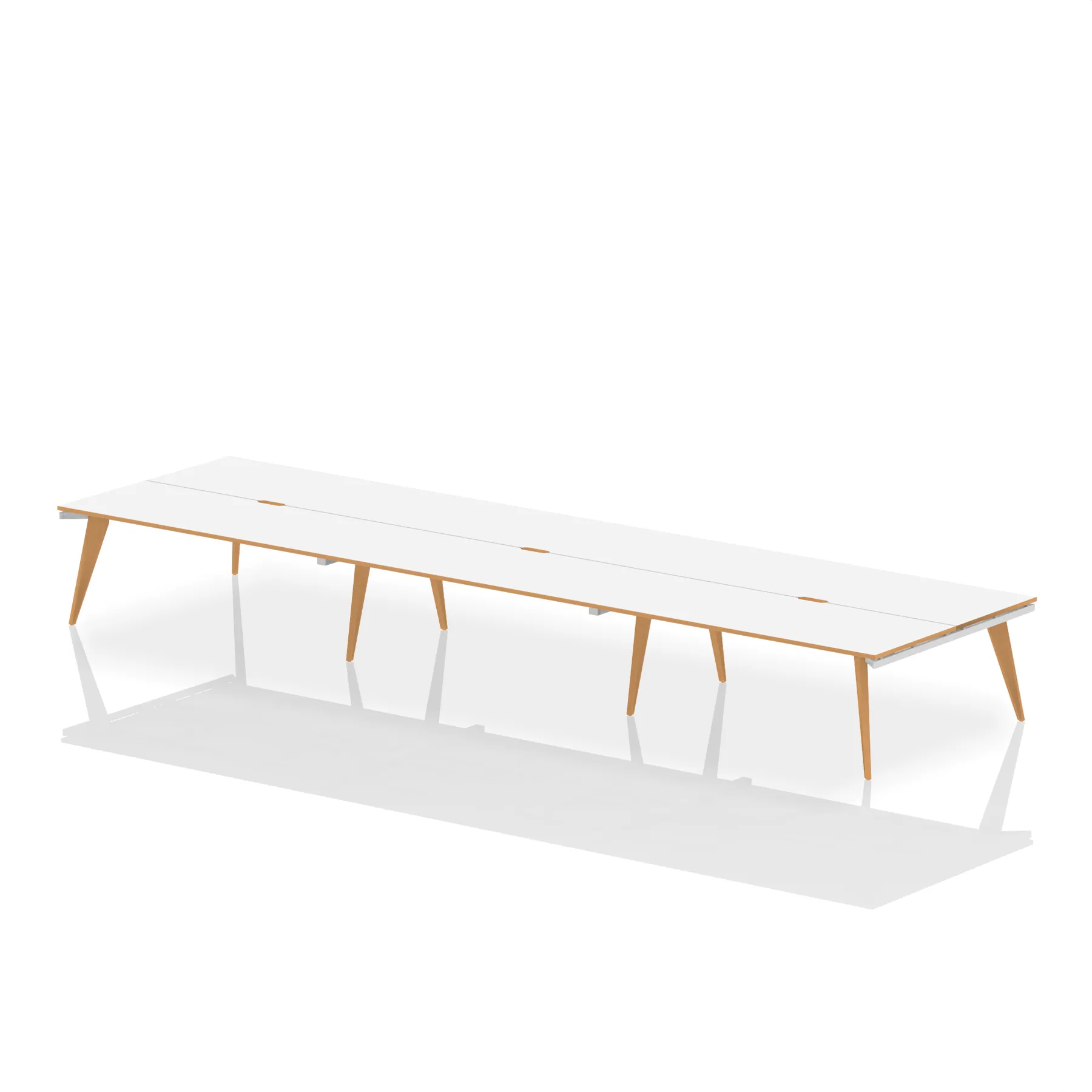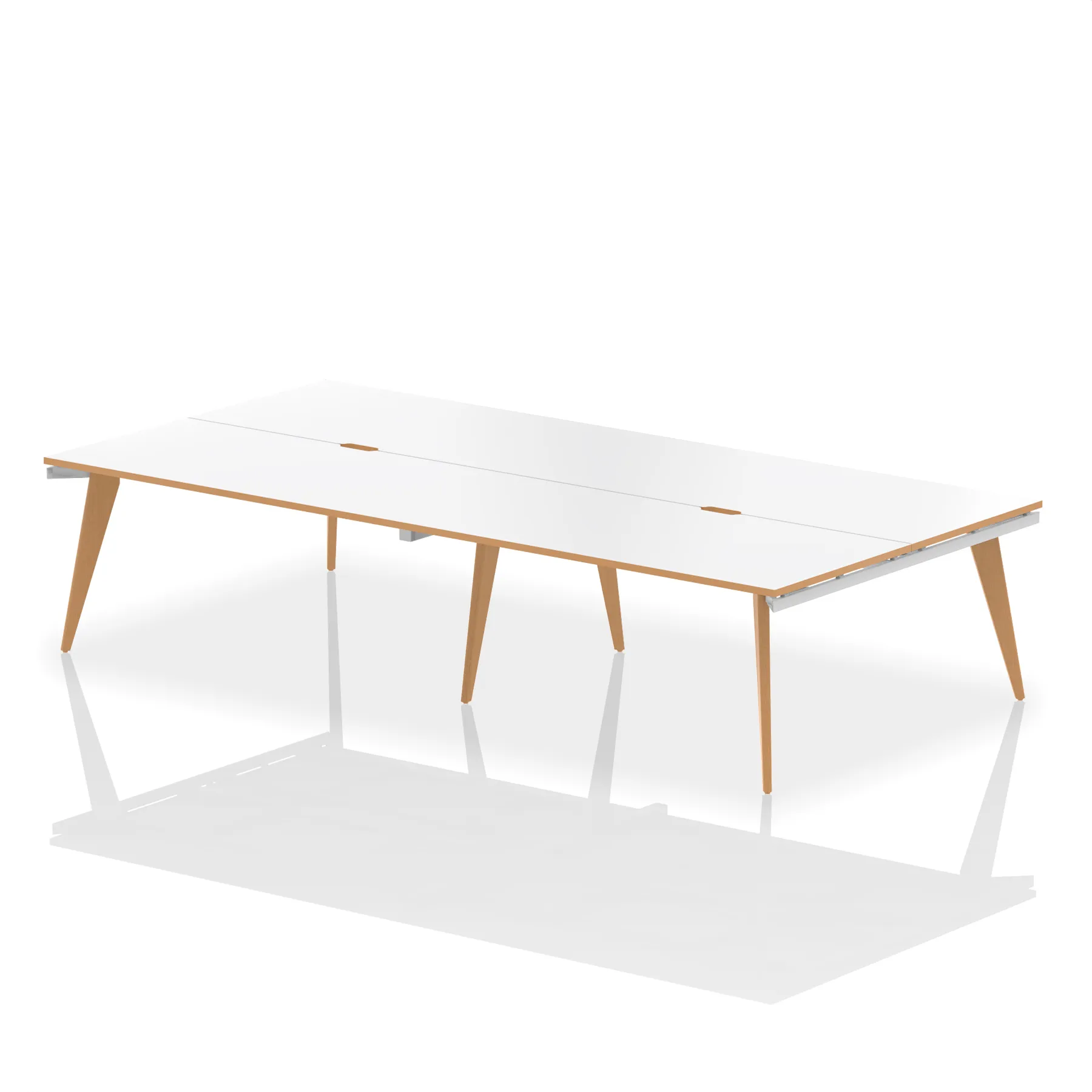 Bench desk for minimalist look | Floor levellers | Floating fixed desk top | Scalloped back edge for easy cable dumping |2mm protective ABS edge | 25mm thick tops | Weight Capacity 100Kg