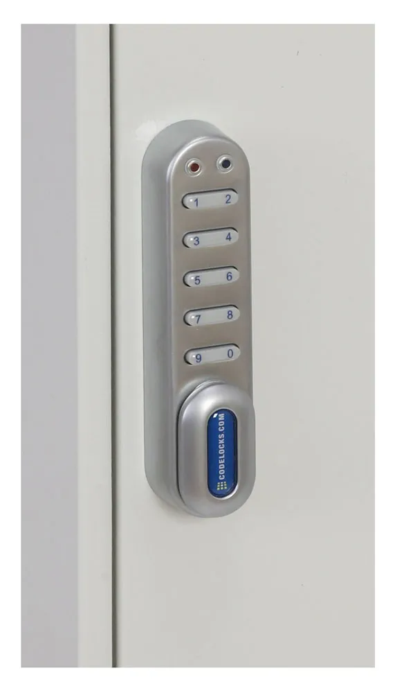 Electronic – Manufactured with a high quality economical Electronic Code lock. A simple 10 digit keypad gives the owner the option of entering 4-digit codes, and is easy to use